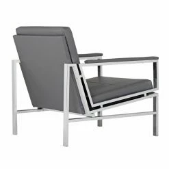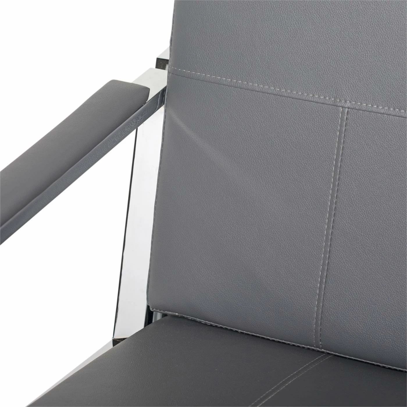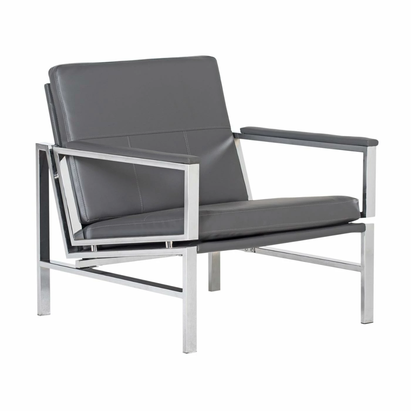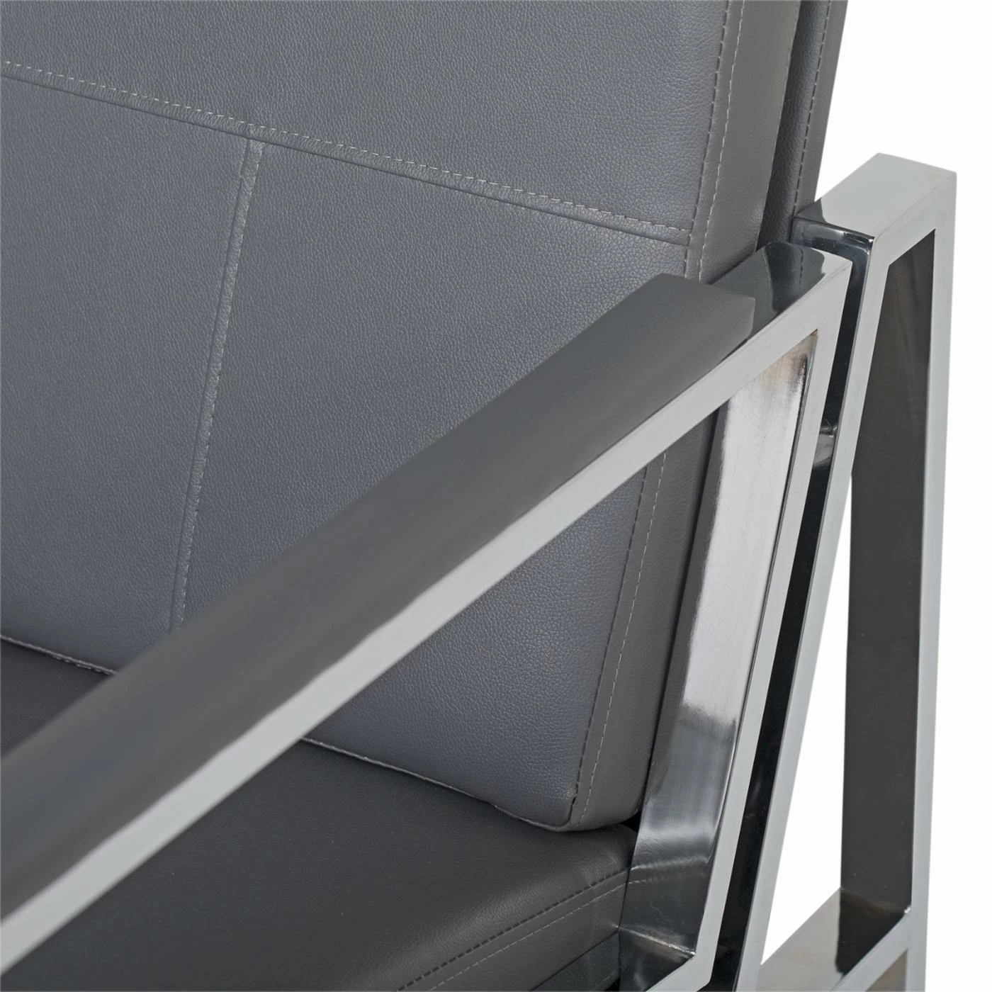 Style and comfort come together to provide luxurious seating with the Studio Designs Atlas Bonded Leather Lounge Chair. This chair is constructed with a sturdy metal frame in a sleek chrome finish for a chic modern look. Its gray leather upholstery is adorned with stitched detailing and features ample padding on the seat, back, and armrests for premium comfort. The chair’s ergonomically sloped seat and backrest invite you to lie back and indulge in a well-deserved moment of downtime. Add this chair to the lounge, living room, or any space where relaxation and leisure are to be had.