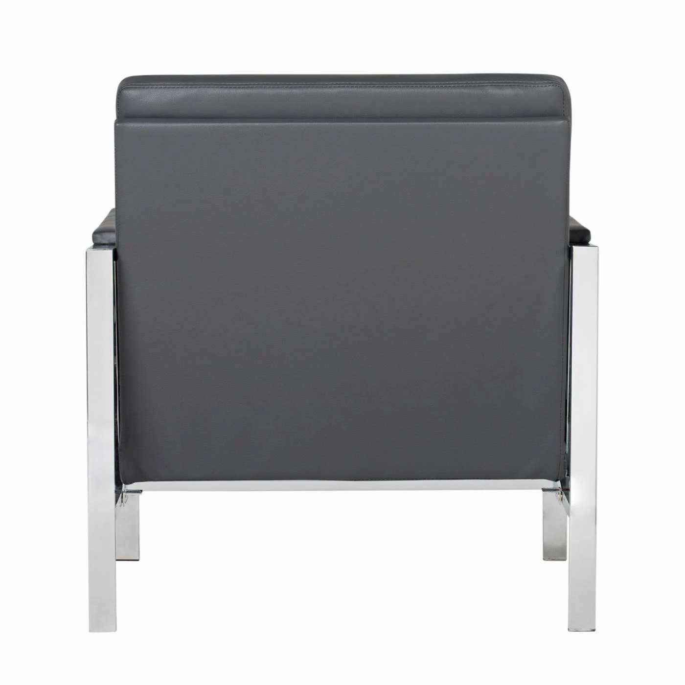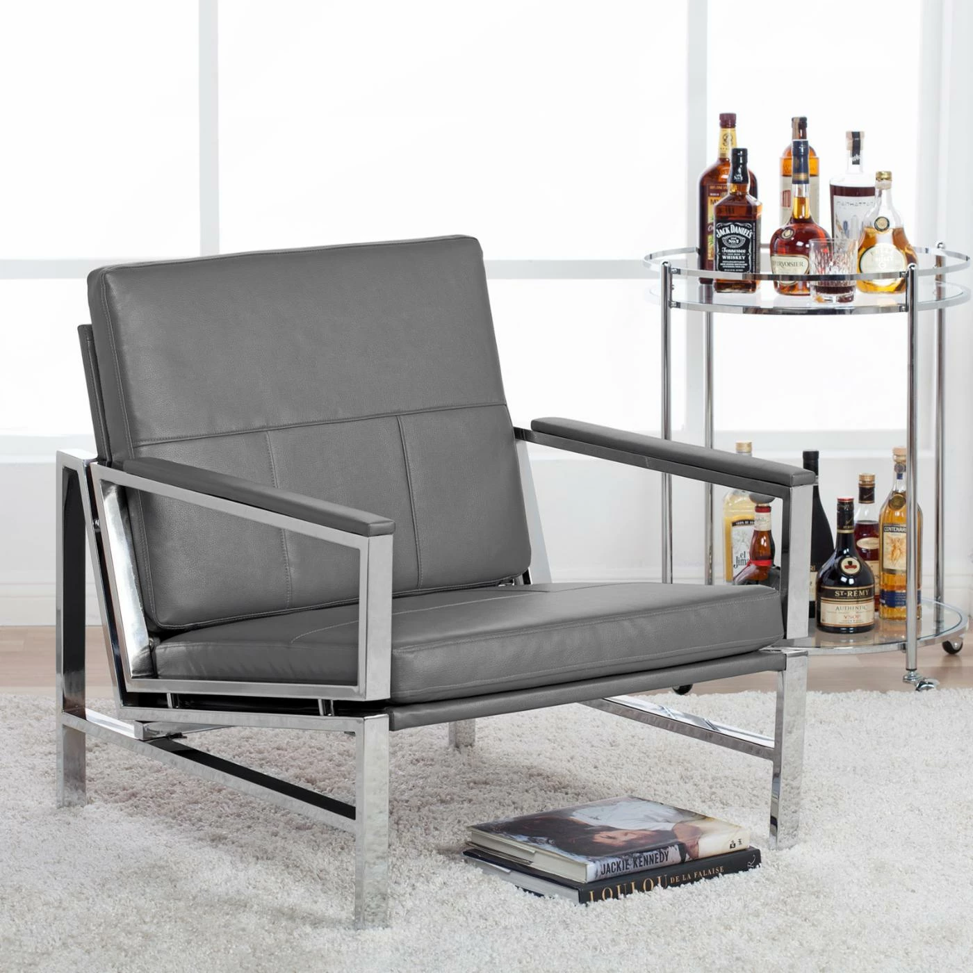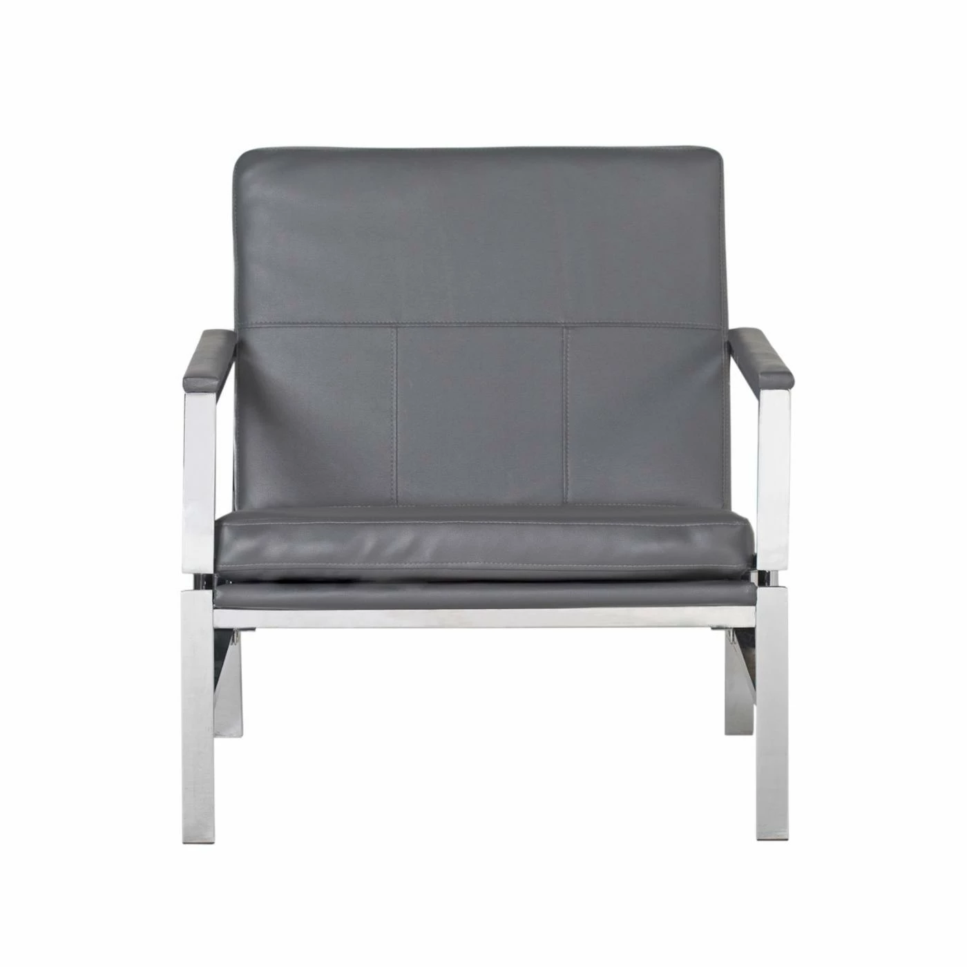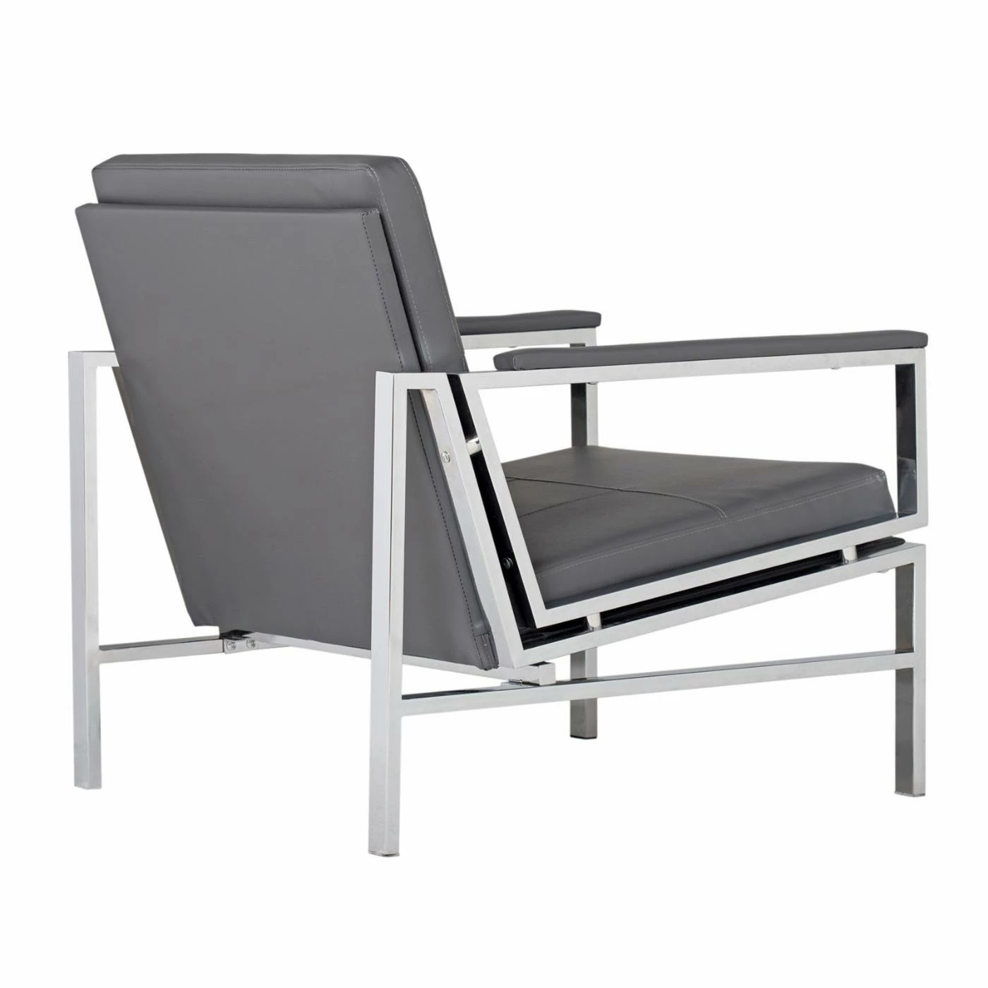 Style and comfort come together to provide luxurious seating with the Studio Designs Atlas Bonded Leather Lounge Chair. This chair is constructed with a sturdy metal frame in a sleek chrome finish for a chic modern look. Its gray leather upholstery is adorned with stitched detailing and features ample padding on the seat, back, and armrests for premium comfort. The chair’s ergonomically sloped seat and backrest invite you to lie back and indulge in a well-deserved moment of downtime. Add this chair to the lounge, living room, or any space where relaxation and leisure are to be had.