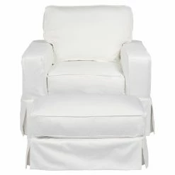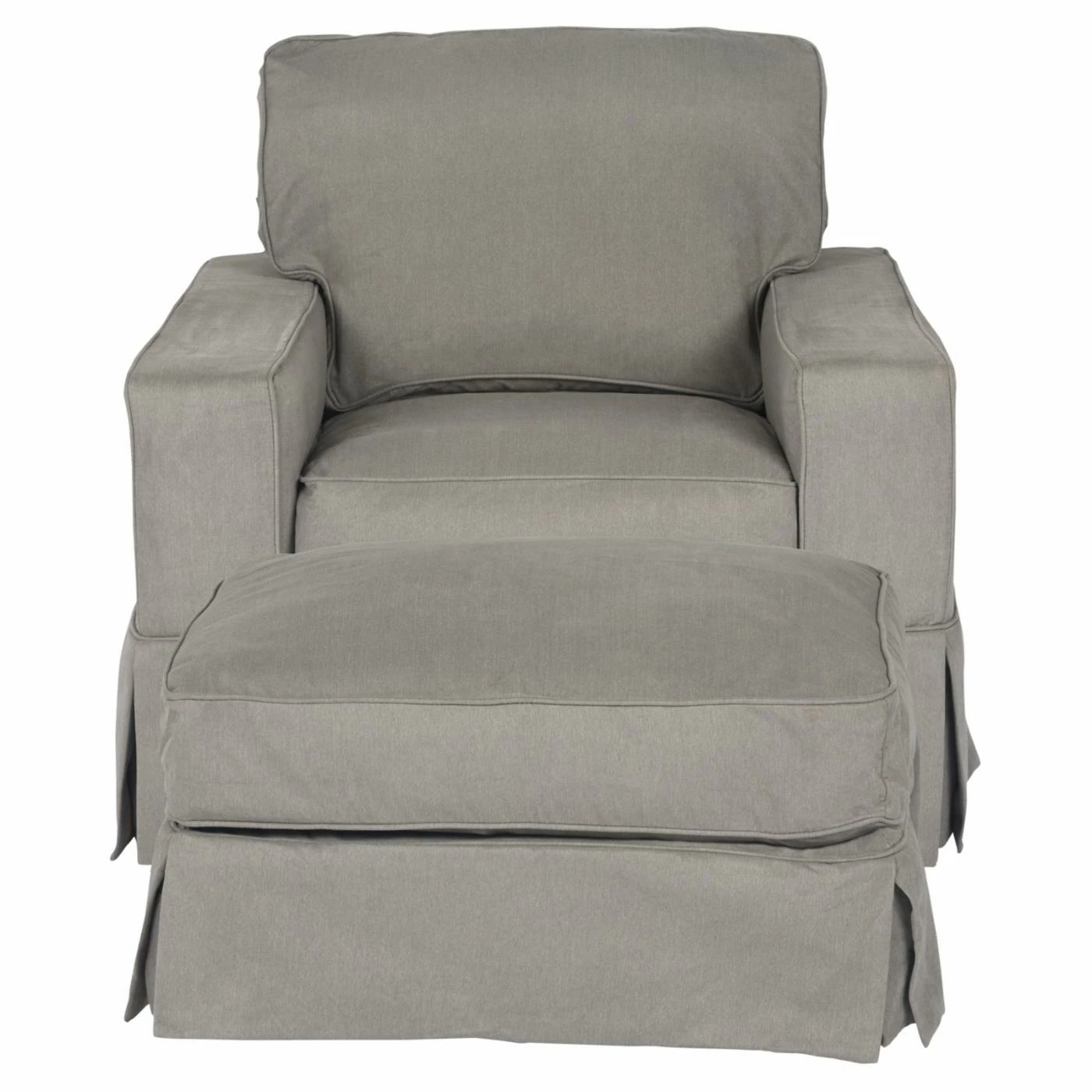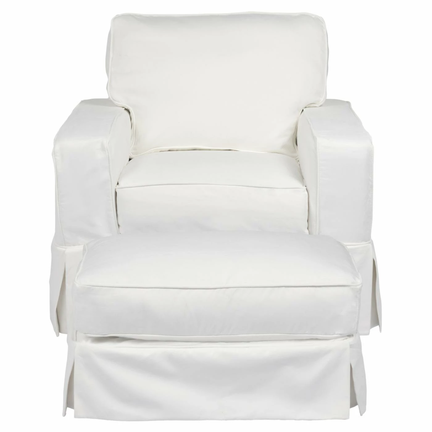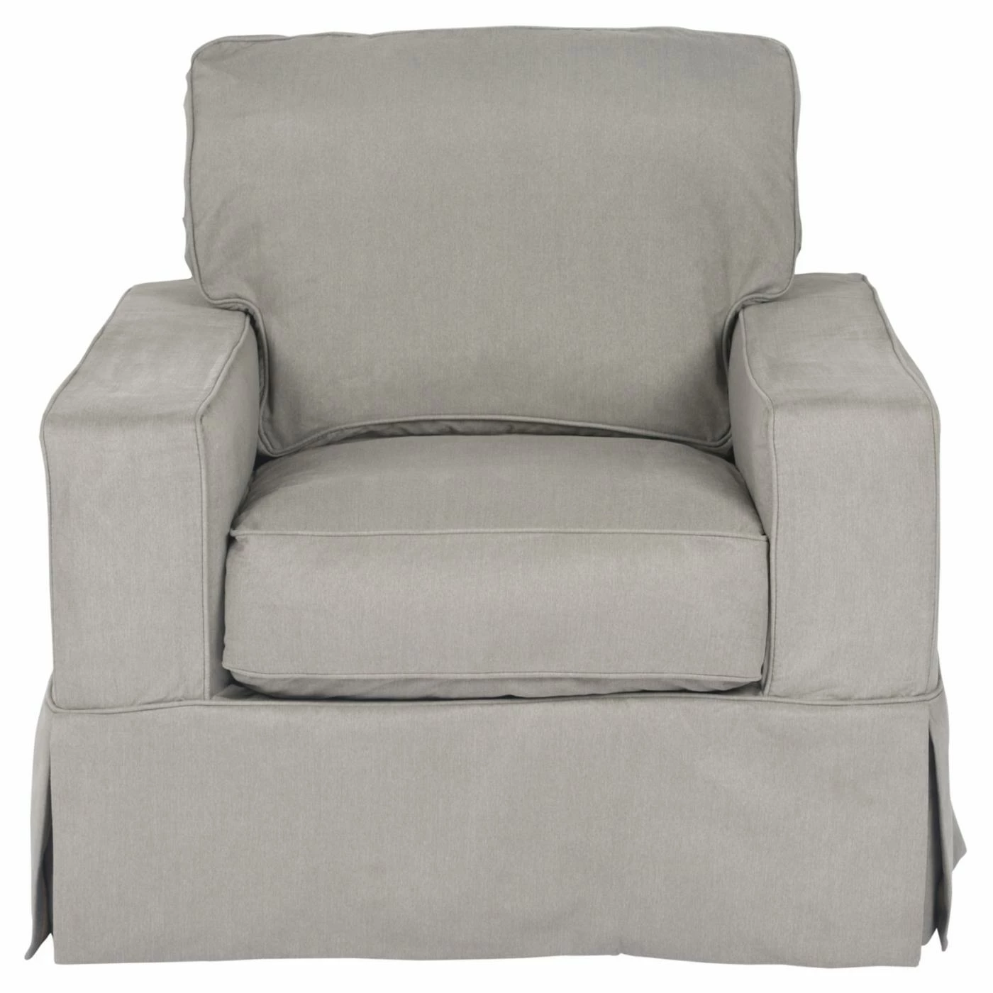 The Sunset Trading Americana Slipcovered Arm Chair is designed for everyday enjoyment. This chair and optional ottoman are durably constructed with kiln-dried hardwood and polyester blend upholstery. The slipcover-style upholstery is breathable and protected with stain-resistant properties for heavy wear. Choose from the available upholstery colors to best coordinate with your space. Layers of comfortable materials will make this your favorite seat in the house. Eight-way hand tied heavy gauge spring coils are topped with a thick foam cushion that’s wrapped with Dracon batting. The back cushion is padded with a feather-down blend in channel-sewn compartments. For easy care, blot messes with a mild soap and water solution. The removable slipcovers are machine washable. For a complete set, add the coordinating ottoman.