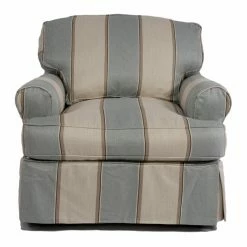 This chair is much more than just stylish, it features a durable hardwood frame topped with eight-way, hand-tied, heavy-gauge steel spring coils that move independently to maximize comfort. The T-shaped seat cushion is 1.8-density foam wrapped in Dacron batting. The T-back cushion has a feather down blend and is channel-sewn to be ultra comfortable. The removable skirt is also machine-washable. Clean the chair by vacuuming it frequently and spot cleaning when needed.