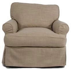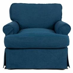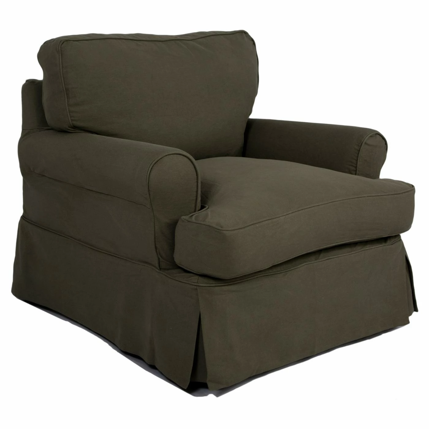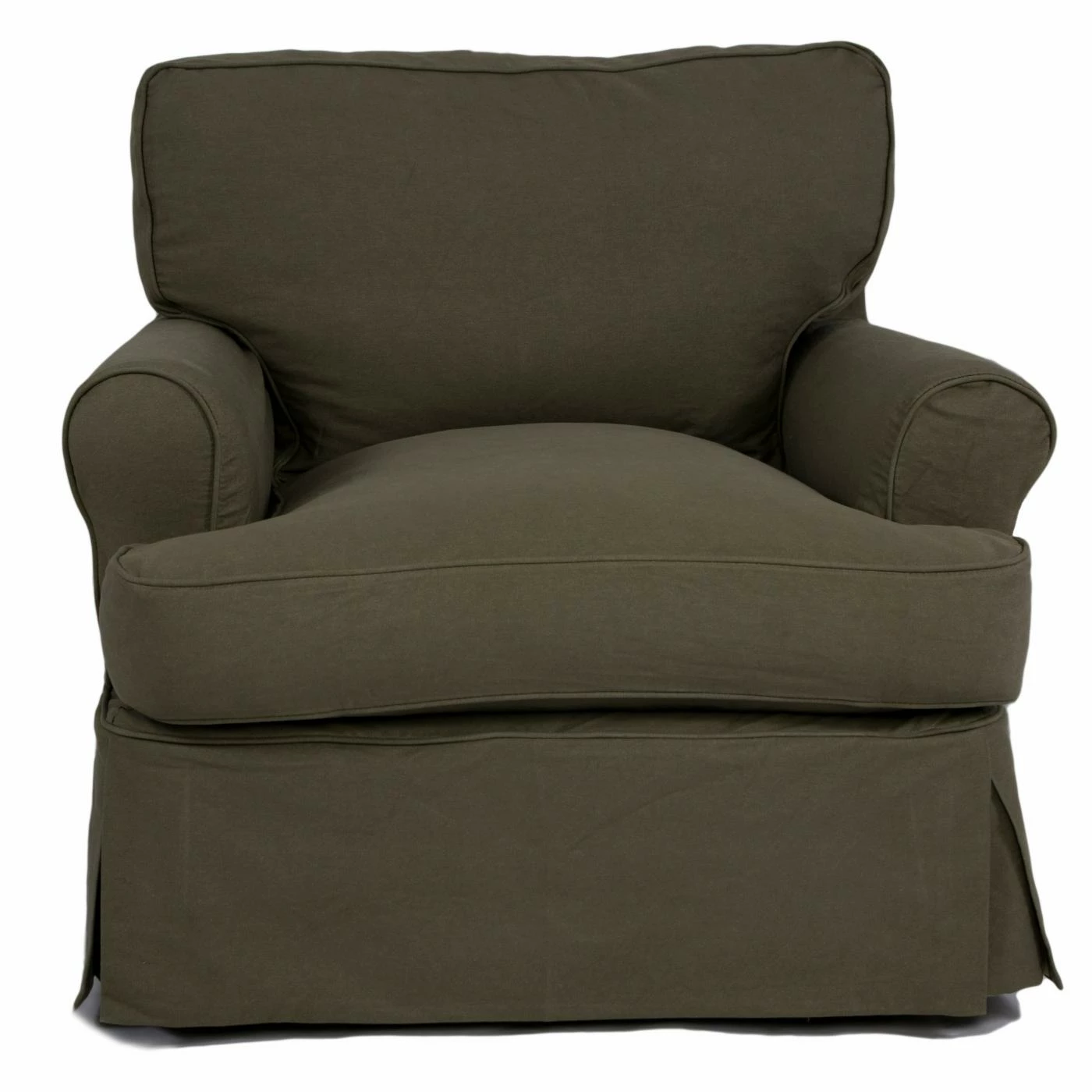 Rolled arms and plush cushioning give the Sunset Trading Horizon Slipcovered Chair its stylish comfort. Sure to be everyone’s favorite, this chair is graced with a laid back slipcover design and side pleated skirt for smart style. Its welted, T-shaped cushions create a classic look. The polyester blend upholstery comes in a variety of color options.