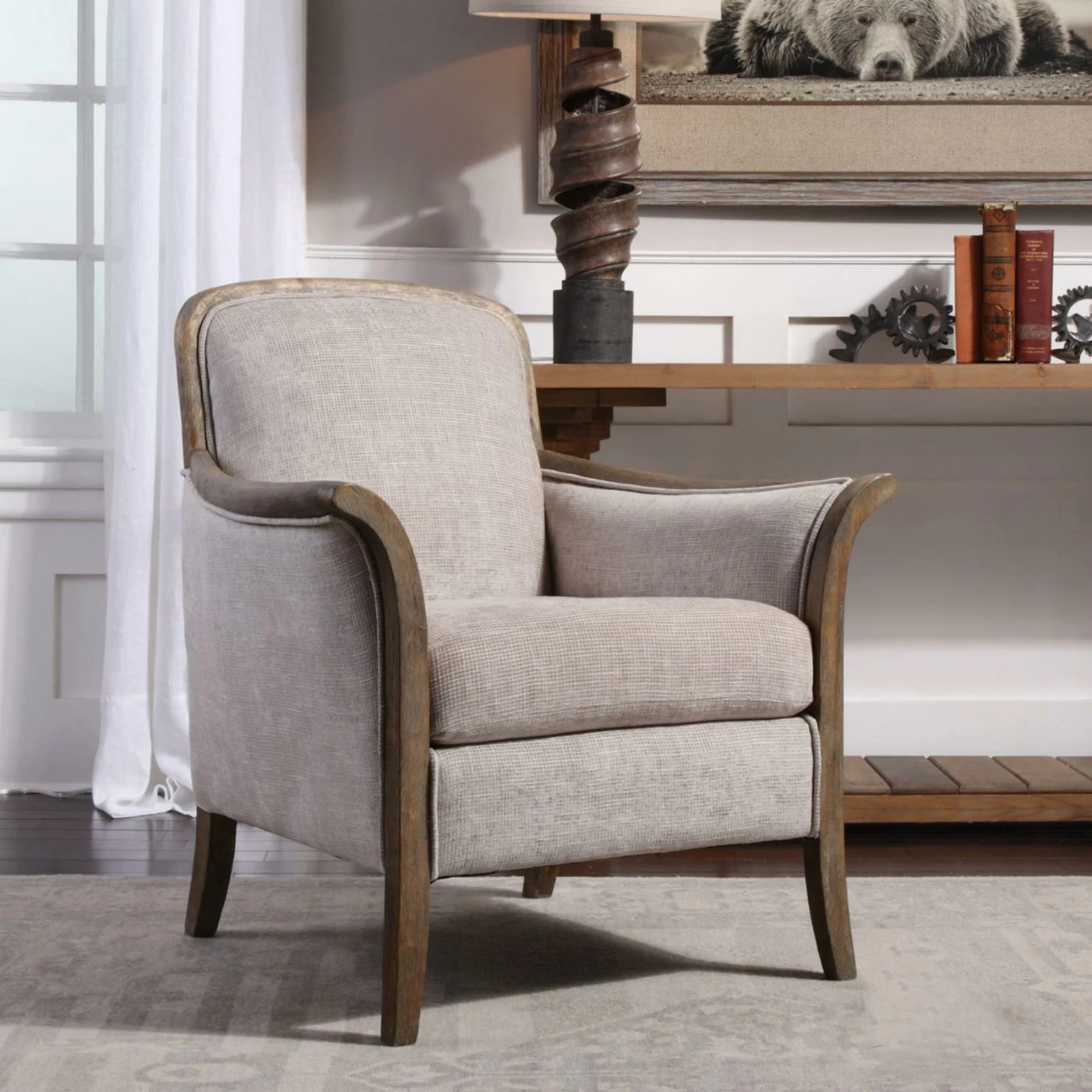 Create a luxurious place to sit and relax with the Uttermost Brittoney Taupe Armchair. Inspired by mid-century design, this armchair offers a chic combination of wood framework with plush upholstery. The neutral color tone enhances all styles of dΓ©cor and the quality construction ensures it is built to last.