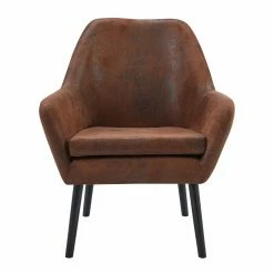 You can enjoy the Versanora Divano Aged Fabric Upholstered Chair all by itself, or you can bring home a few and create a singularly unique space for relaxing or entertaining. This contemporary design features a deep seat that’s flanked by high arms with a tall, curved backrest. Thick layers of foam wrap around the wooden frame. This material is offered in a range of colors to fit any style or taste. The aged brown upholstery comes from a unique fabric that’s got the look and texture of aged leather while the teal blue provides a textured look similar to denim.