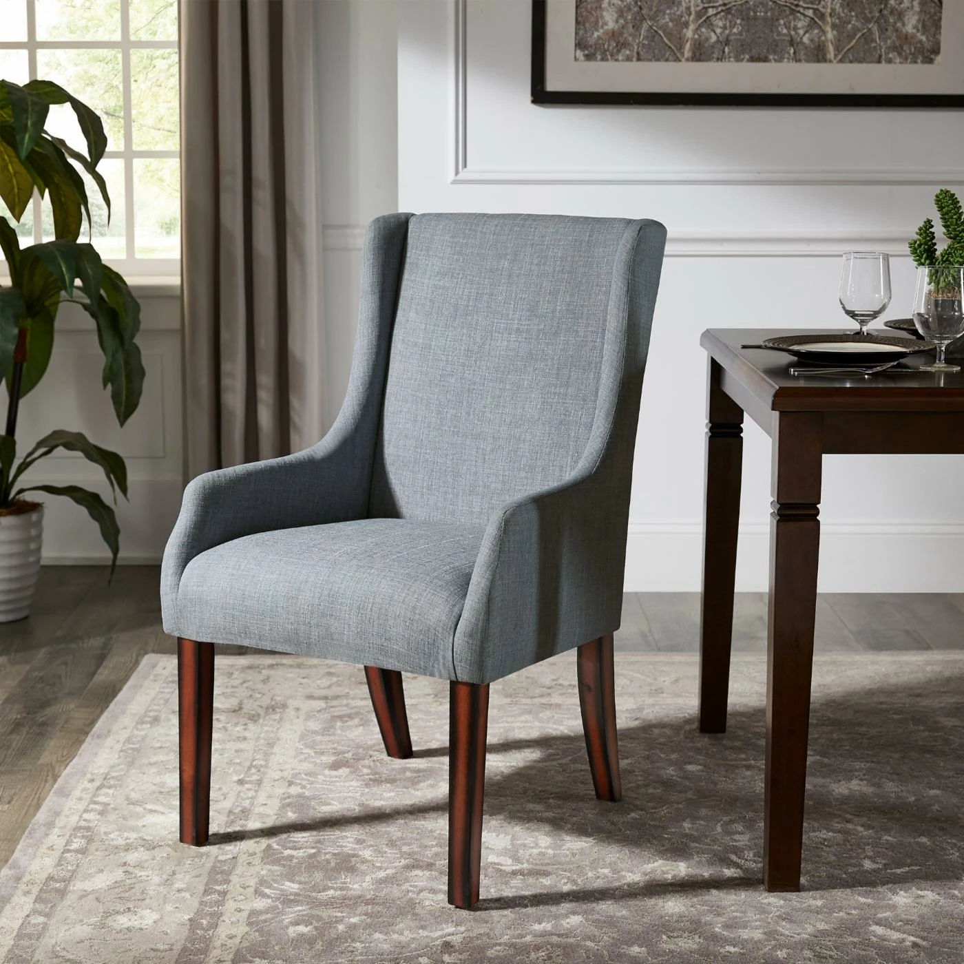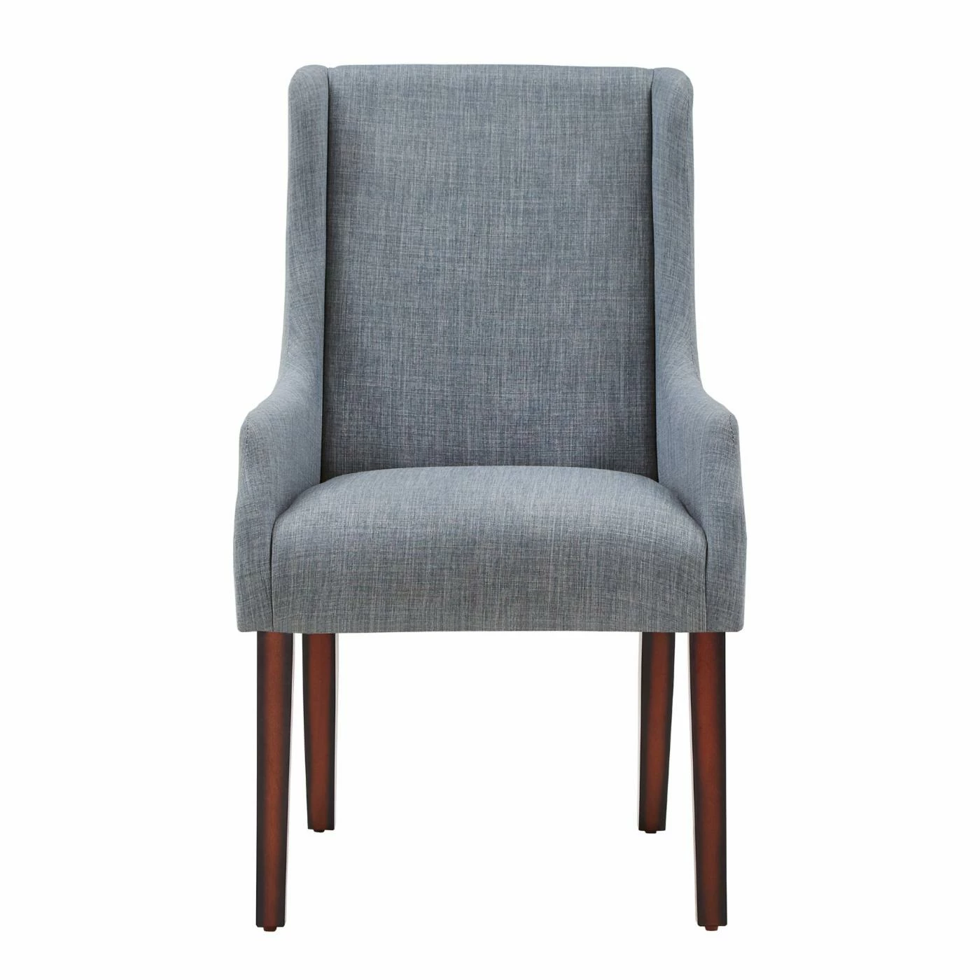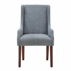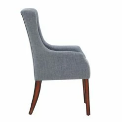Offer unparalleled comfort and style to any room with the Weston Home Accent Chair With Sloping Track Arm. Crafted of durable rubberwood, this accent chairs solid fabric upholstery comes in select color options available. Its classic styling showcases sloping track arms and a deep cushioned seat and back.
