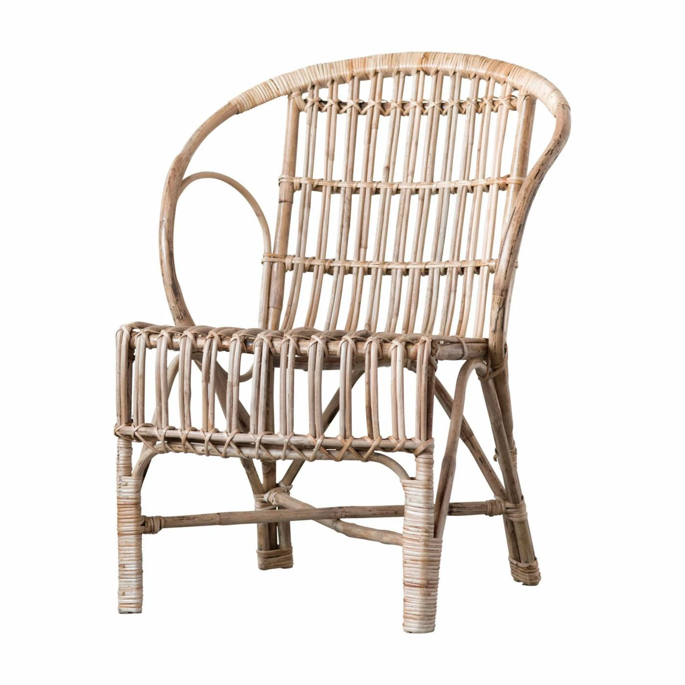 Bring some casual coastal charm to your sun room or lounge with the 3R Studios Cane Wood Woven Accent Arm Chair. This armchair is made from bent bamboo wicker with protective natural finish. A wide, arched back and open-sided loop details add a dynamic flair to the design. The slatted seat and backrest promote airflow, making this ideal for a porch or screened-in patio.