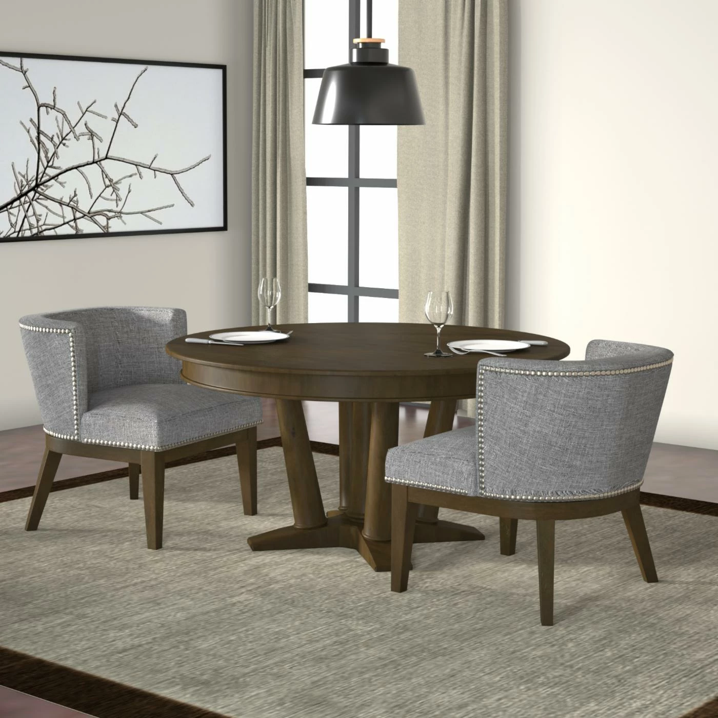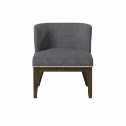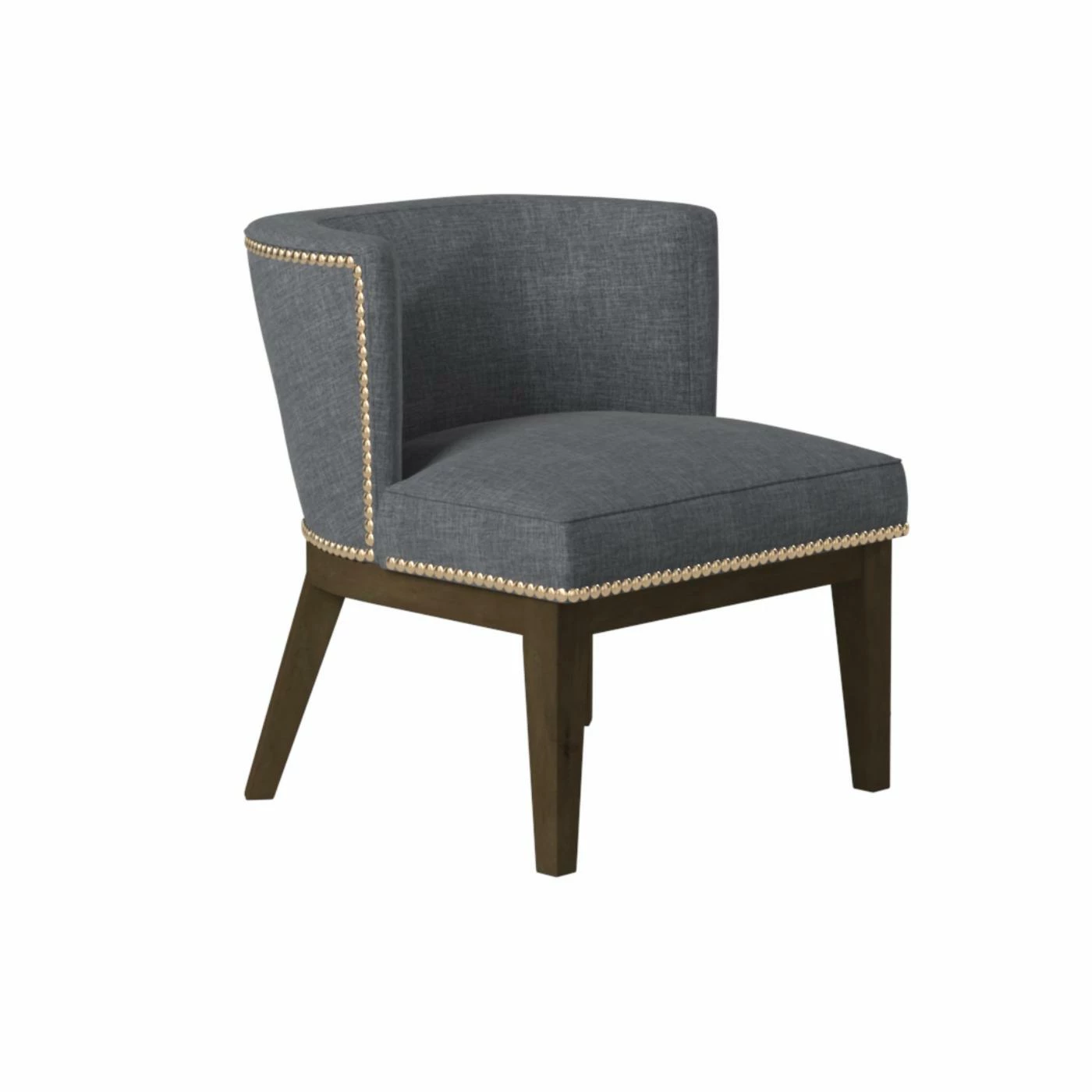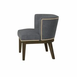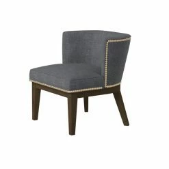 Accent your living room, create a reading nook, or create a stylish waiting room in your office with the Boss Ava Accent Chair with Nailheads. This chair is constructed with a solid frame and designed with stylish, tapered wood legs in a brown finish. The chair is upholstered in commercial-grade, medium gray linen that will last you for years. A silver, hand-applied nail-head trim embellishes the chair and adds to the chic look. The extra-large padded seat and winged back provide ample comfort. Add your own personal touch with a throw pillow or blanket. This accent chair has a 250 pound weight capacity. Some assembly is required.