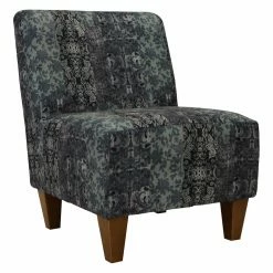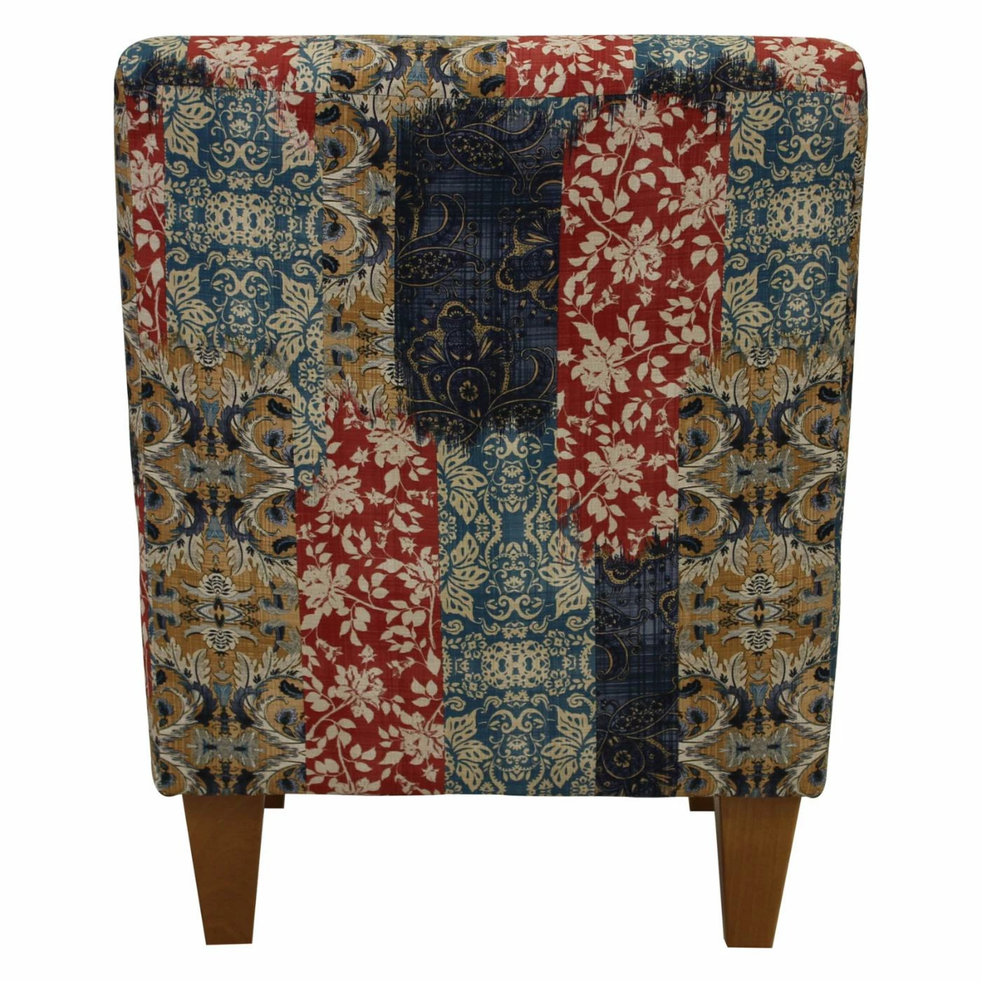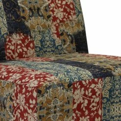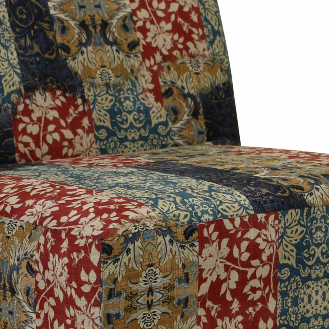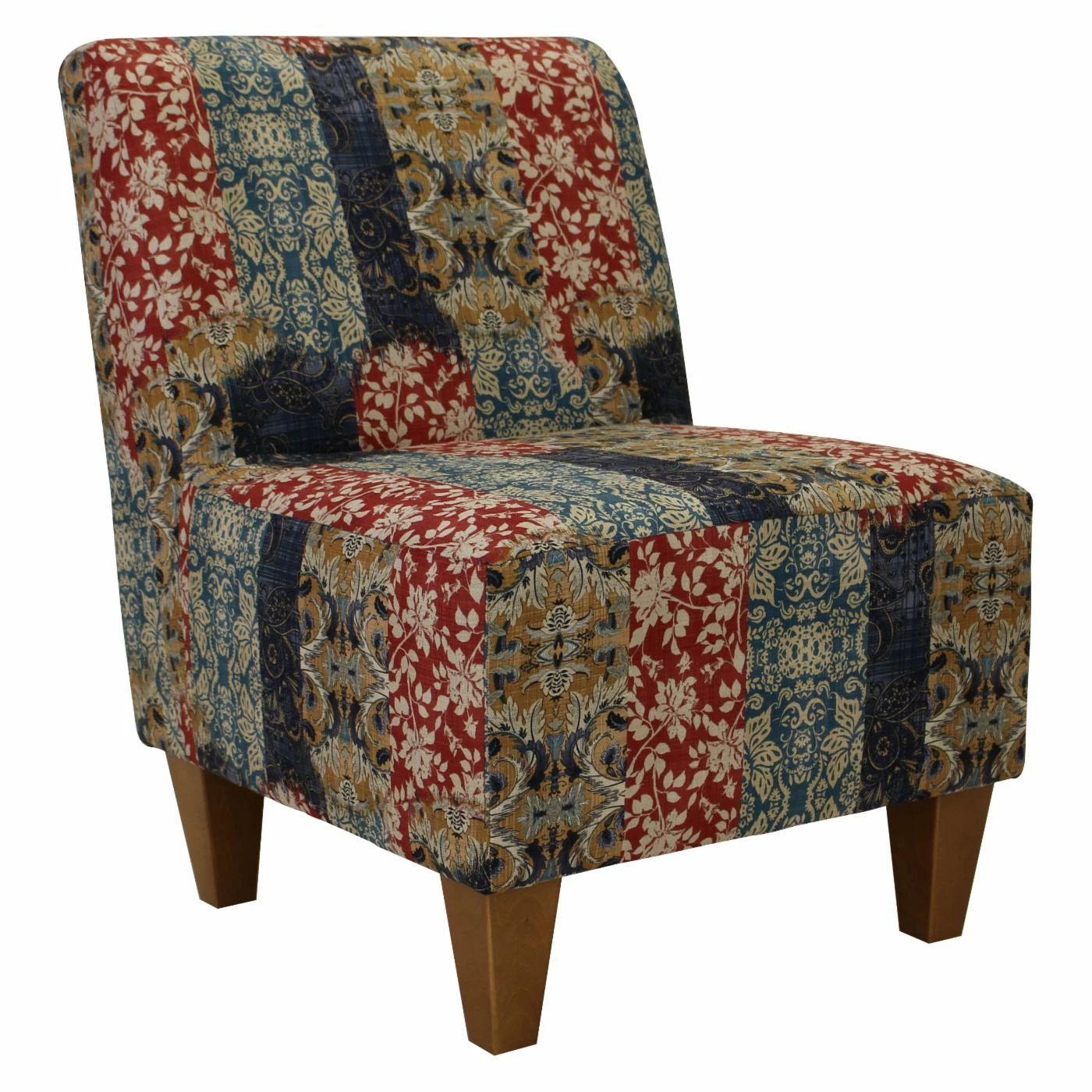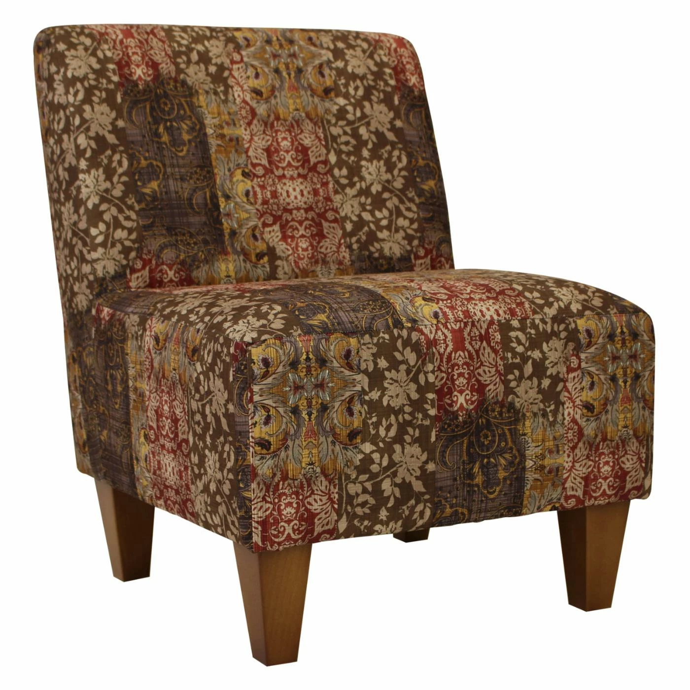 The Fox Hill Penelope Patchwork Armless Slipper Chair features a rich melange of exotic prints. With a wide seat and a strong wooden frame, this chair is ready to stand guard in your bedroom, den, or living room. Square tapered legs in a medium brown finish complete the look. Requires minimal assembly; made in the USA.