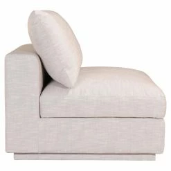 Settle in on the Moes Home Collection Justin Slipper Chair, and get ready to relax. The solid pine wood and engineered wood frame of the slipper chair is amply cushioned with foam and clad with luxurious polyester-linen upholstery to ensure your comfort. You can use the slipper chair on its own or mix and match it with the other pieces in the Moes Home Collection Justin range to create your own sectional.