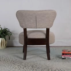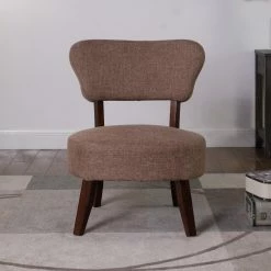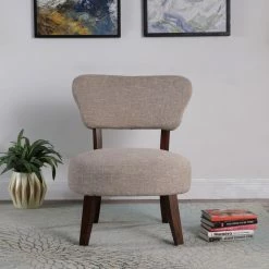 The Nathaniel Home Willow Accent Chair makes a bold transitional seating option to match your mid-century accent table or writing desk. This chair has a floating-style, tapered backrest and wide, round seat. Plump, dense foam pads piece, upholstered in a durable linen fabric. The frame is made of wood with splayed legs and a toasty espresso brown finish. Choose from available color options to make it yours.