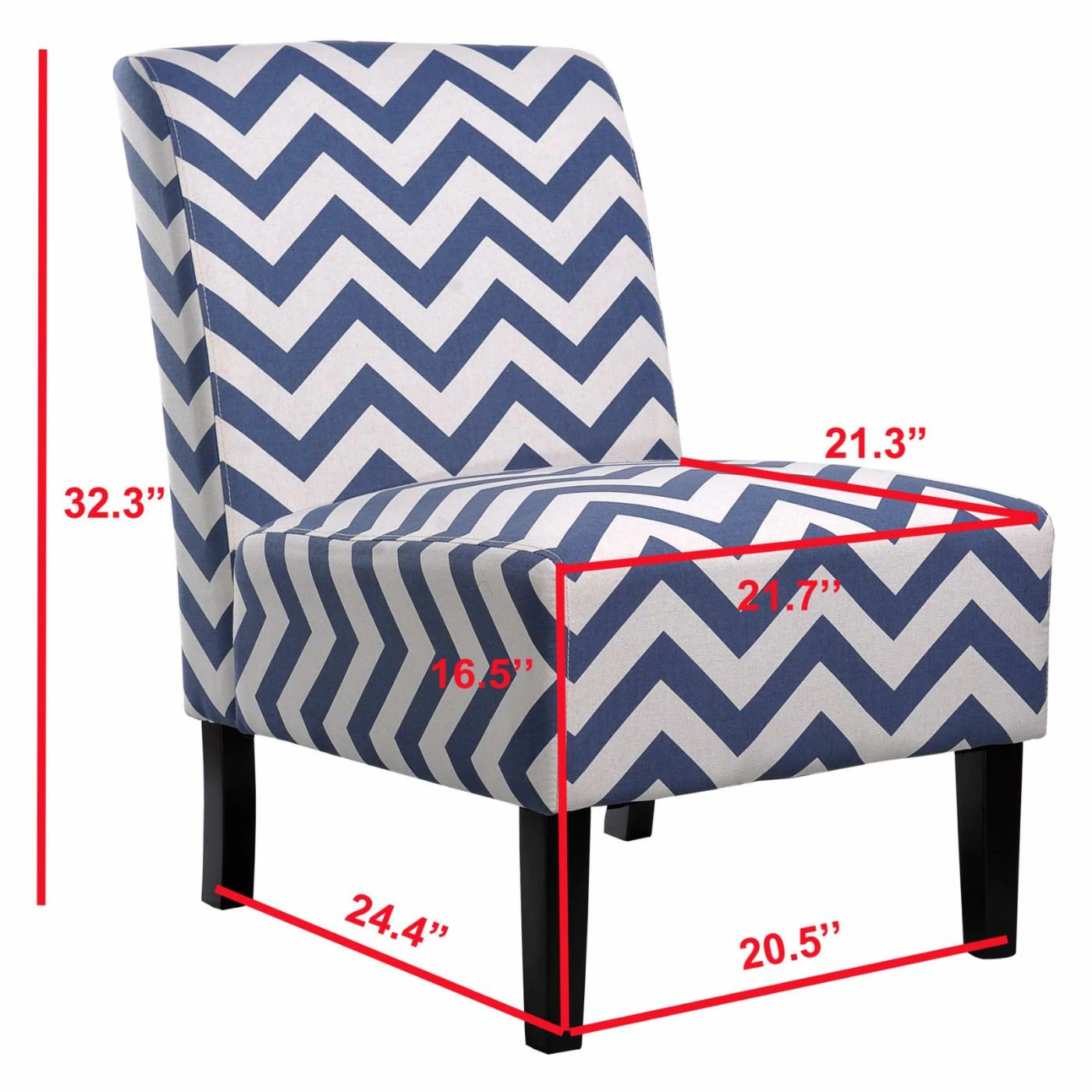 Fall in the love with the parson-styleΒ NH Designs Chevron Accent Chair. Featuring comfortable seating, a sleek design, and a solid wood frame, this chair makes an excellent addition to any space in your home. Chevron-patterned upholstery covers the chair and lends a sophisticated look.