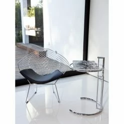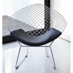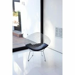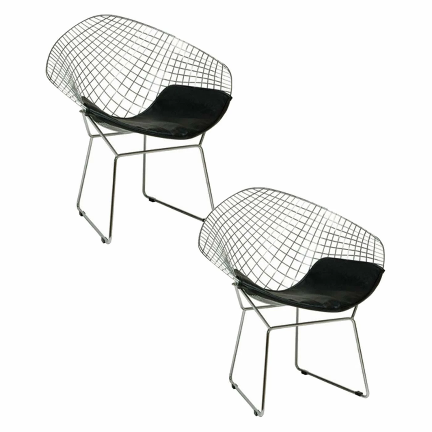 With their basket-like seats, the chairs in the Pangea Home Galaxy Wire Mesh Chair – Set of 2 cradle you in comfort while you relax and unwind. The frames of these two matching chairs are crafted out of durable metal wire finished with gleaming polished chrome. A curved, padded cushion with black faux leather upholstery adds a sophisticated finishing touch. The bent wire legs are capped to ensure stability and protect hard flooring.