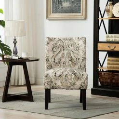 Give your living room an added touch of refinement with the Roundhill Furniture Capa Paisley Print Fabric Armless Contemporary Accent Chair. The soothing beige paisley-patterned fabric contrasts nicely with the espresso-finished hardwood, and the chair’s foam-padded seat is extra comfortable. This lightweight, armless accent chair will be ideal when you want to relax with your favorite book, music, TV show, etc.