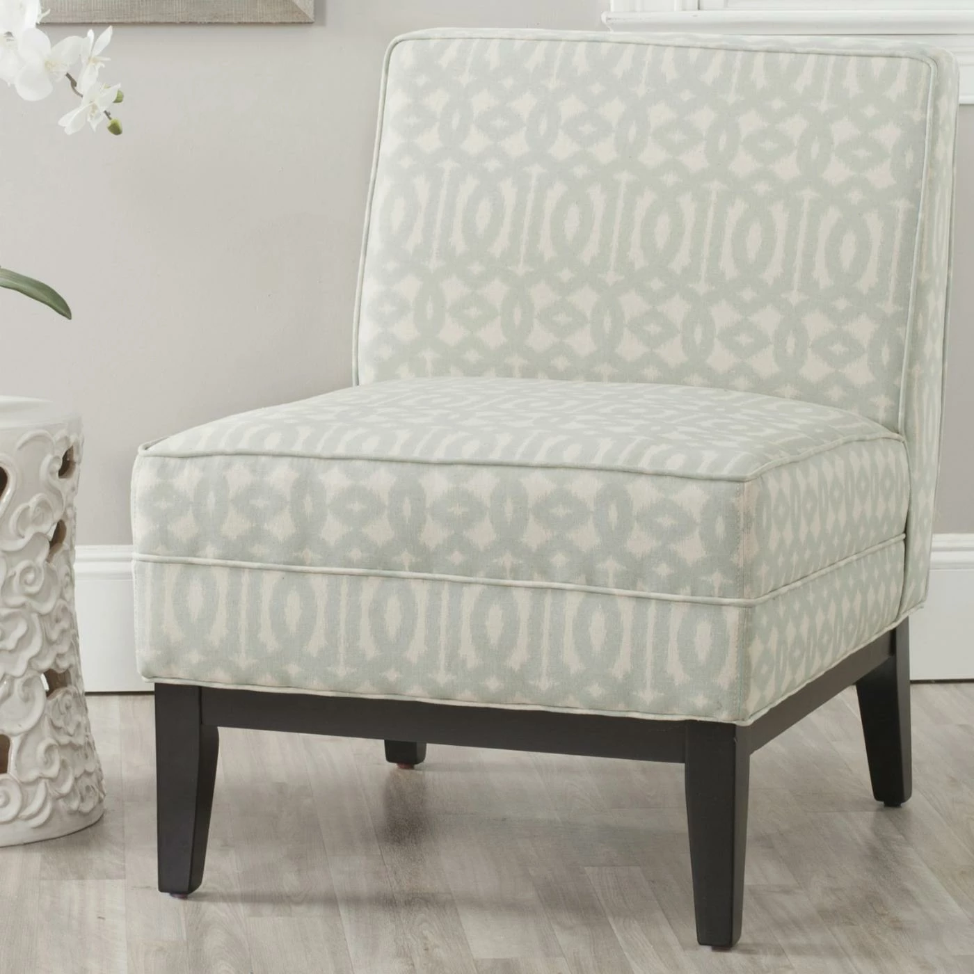 The Safavieh Armond Chair – Silver has an armless silhouette enhanced with a durable birch-wood frame and legs in a dark brown finish. This charming chair is enlivened with fabric upholstery covered in a Moroccan-inspired geometric design. The soft hues of silver and cream bring it a graceful look that works well in any room of your modern home.