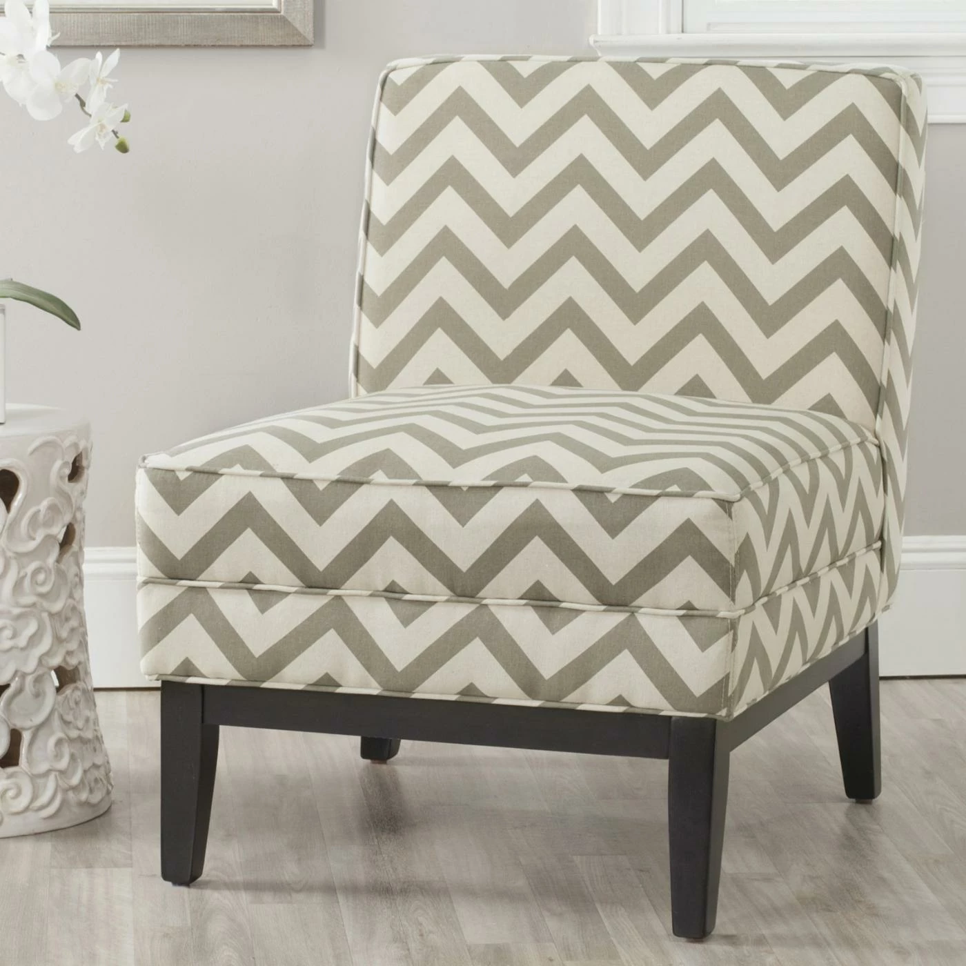 Lend your space a modern vibe with the Safavieh Armond Zig Zag Chair, enhanced with fabric upholstery in a fun zigzag pattern. This stylish armless chair is bolstered by generous padding on the back and seat with durable birch wood legs for support and comfort. Use it in your living room, bedroom, or den for a functional piece of furniture coupled with contemporary flair.