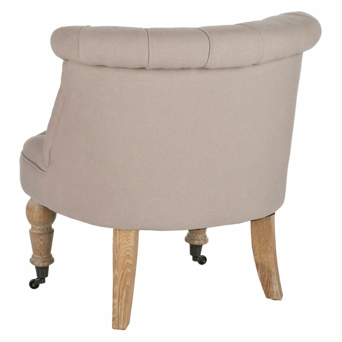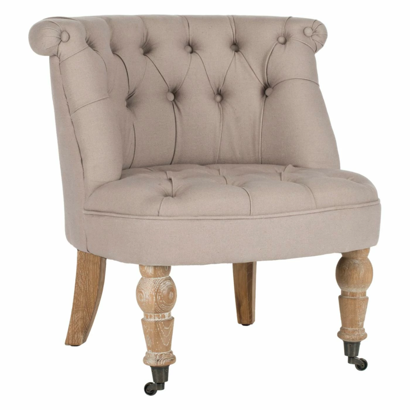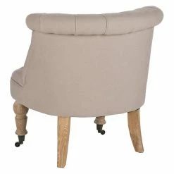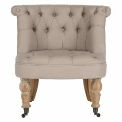 The Victorian age redefined traditional, and the Safavieh Carlin Tufted Chair – Taupe brings that tasteful tradition into your home. The Victorian era is one of the most significant periods in furniture design, because of the quality and detail that could be achieved through the new mechanized technologies, producing visually stunning pieces that added style to everyday living for the growing middle class. This Victorian-inspired chair does a marvelous job of bringing luxurious beauty to any decor without being overbearing. The curved seat front, the rolled back, the turned legs, and the deeply button-tufted cushioning are all hallmarks of quality furnishings from 19th century England. Yet this ornamentation serves only as an eye-catching accent that folds easily into any living room, guest room, parlor, or home office. The durable cotton blend and birch wood constructed frame create a beautiful and sturdy piece that will stay looking nice for years to come.