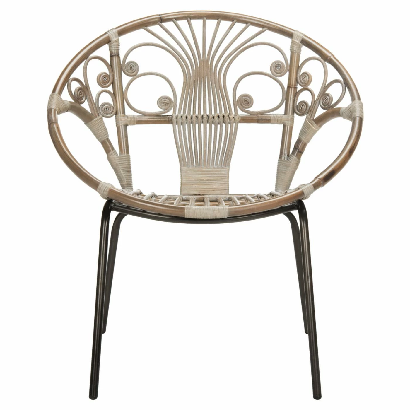 With curled rattan tendrils in a gray-washed finish, the Safavieh Carlson Accent Chair offers tropical drama. A clean circular hoop defines the boundaries for the wrap-around seat, while simple black-finished metal legs play a supporting role. Placed in your foyer, this accent chair can serve as a catch-all for your handbag and scarf, or make a statement in your living room.