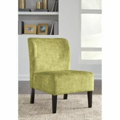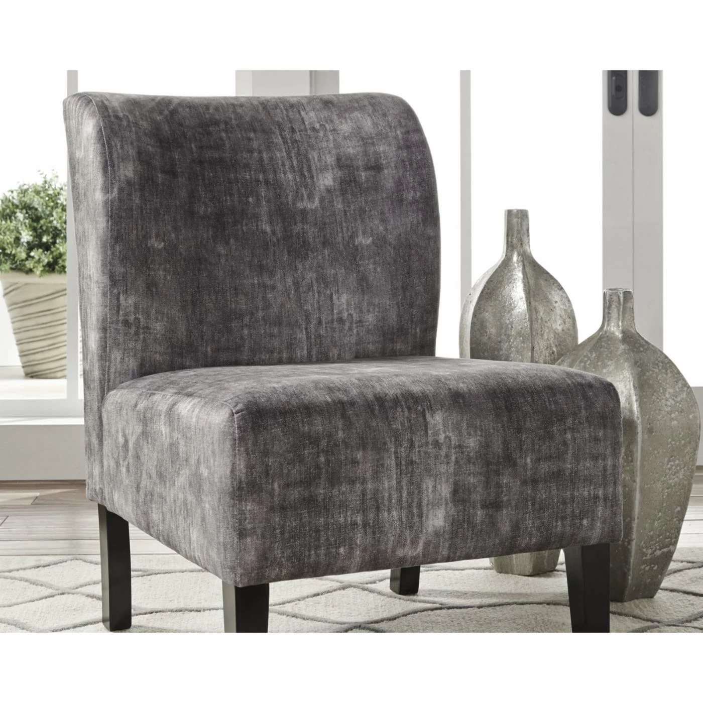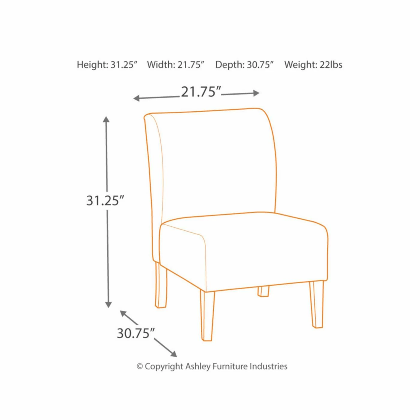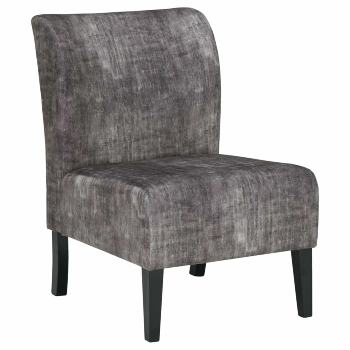A compact design and casual fabric make the Signature Design by Ashley Triptis Armless Chair an inviting addition to any room of your home. This armless design features a gently curved back and thick seat cushion. The exposed legs offer a dark faux wood finish to coordinate with your existing furniture. Some assembly required.