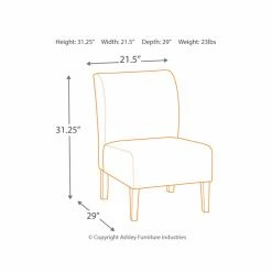 Any area of your home becomes a chic sitting area when you add the Signature Design by Ashley Triptis Fabric Accent Chair. This armless chair features a multicolor geometric pattern in shades of green, blue, and purple. The tapered legs offer a faux wood finish to coordinate with existing pieces. Some assembly required.