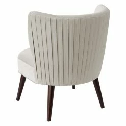 The Skyline Furniture Velvet Mid-Century Armless Pleated Accent Chair‘s classic mid-mod shape and velvet upholstery already make it a stunner, even before you turn it around and see the vertical pleats all across the back. Dark wood legs jut out at angles, completing the middle-of-the-century look. We recommend you place this accent chair where its back can be admired.