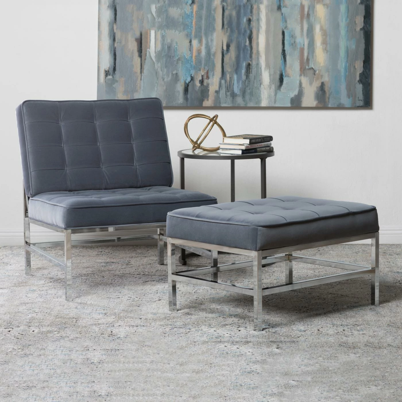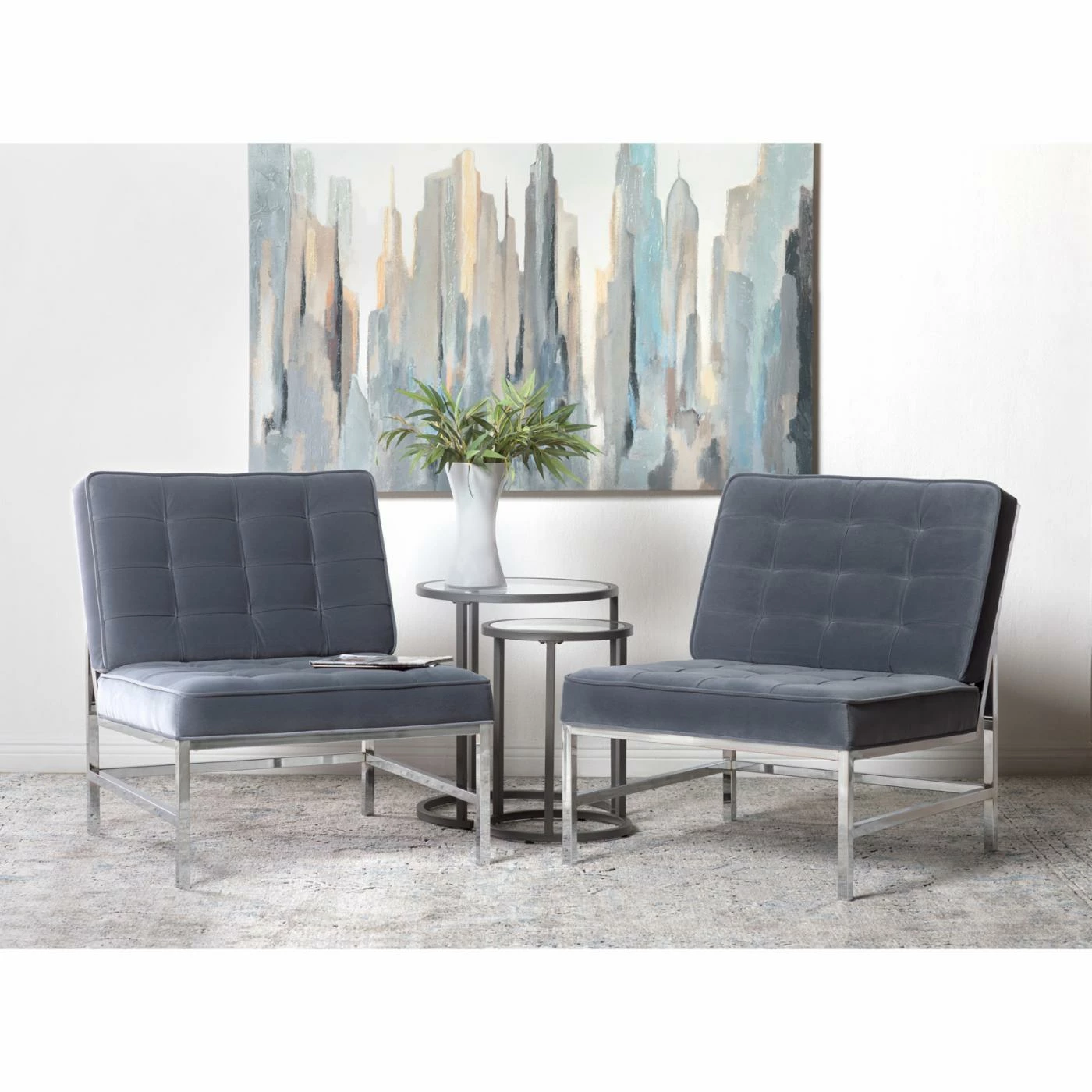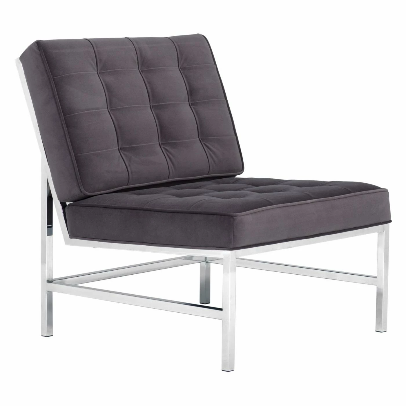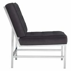 Modernize your living space with the Studio Designs Ashlar Velvet Accent Chair. This accent chair’s relaxed, armless design pairs with velvet tufted cushions and piping detail to fit in any home space. Choose from available color options to match your current home dรฉcor. This seat’s sturdy, chrome legs are sure to update your space.