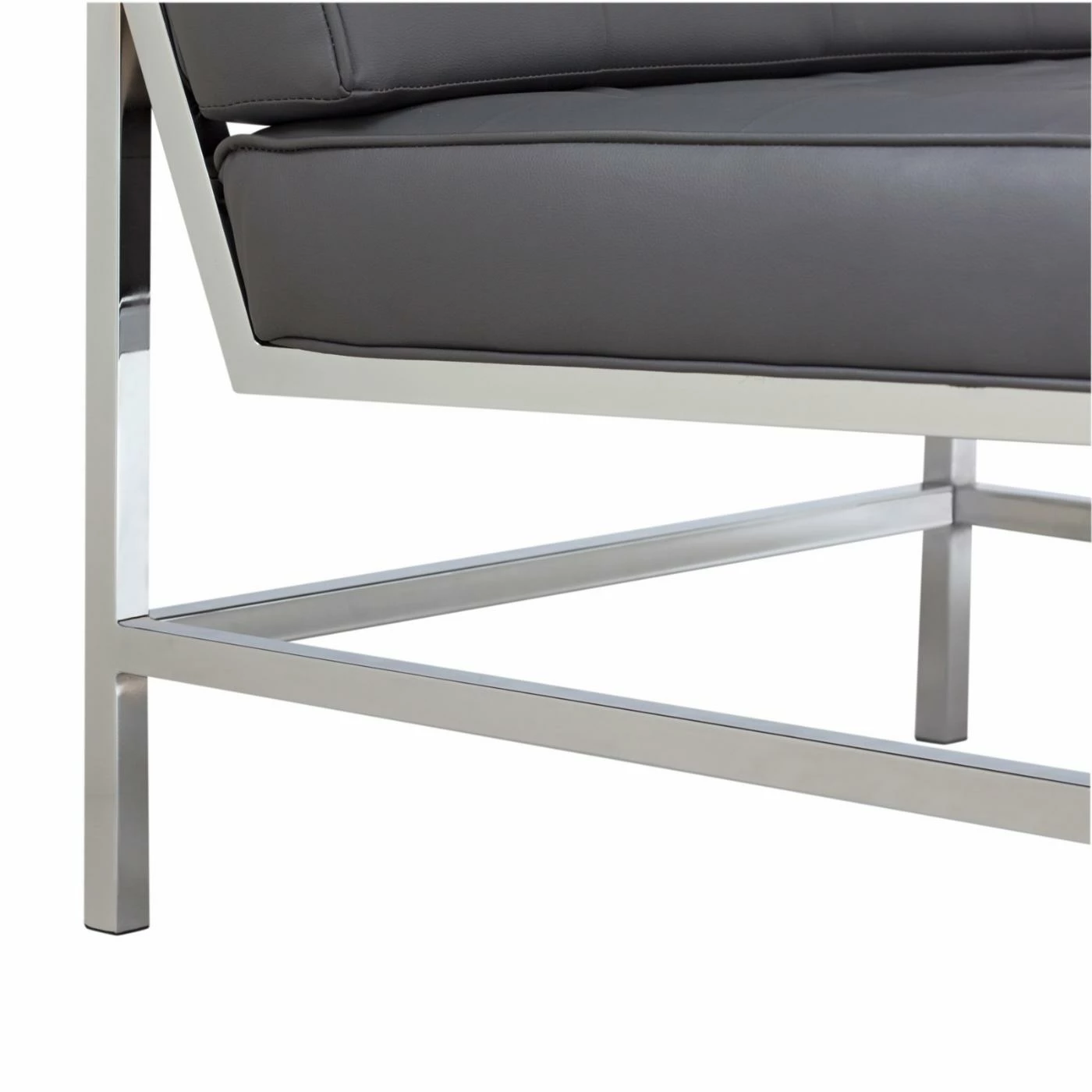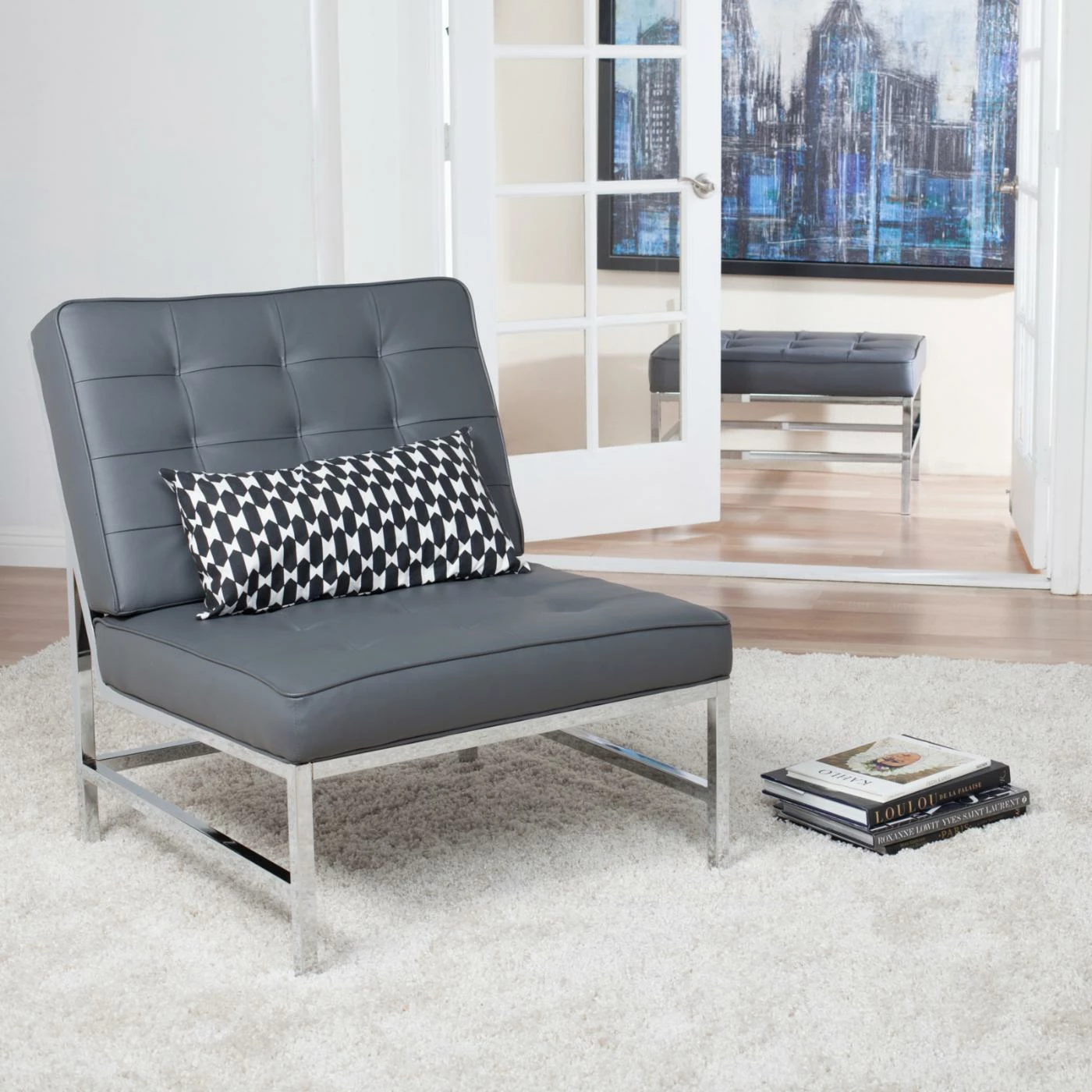 Inspired by Bauhaus designs, the Studio Designs Home Ashlar Chair is a great way to add a bit of mod style to your space. Its chic, sleek frame is made of metal with a polished chrome finish, while the upholstery is crafted of bonded leather. It’s available in your choice of color, and its piped edges and tufted details create visual interest. Some assembly required.