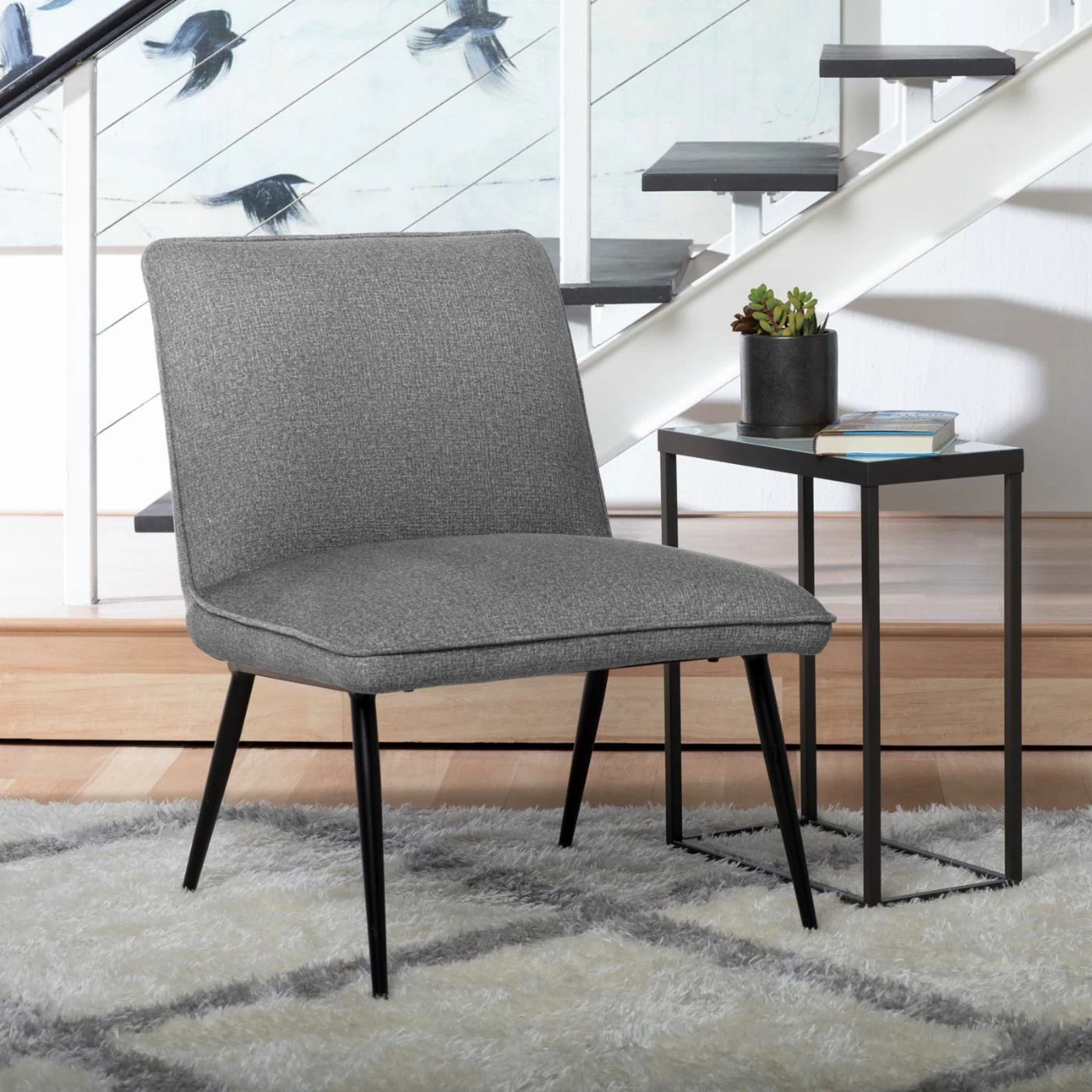 Add a sleek, elegant piece to your bedroom or living room with the Studio Designs Niche Armless Bedroom Accent Chair. This armless chair features slim metal legs in a black finish. The foam cushions are upholstered in low-maintenance polyester. Piping details add visual interest to the piece.