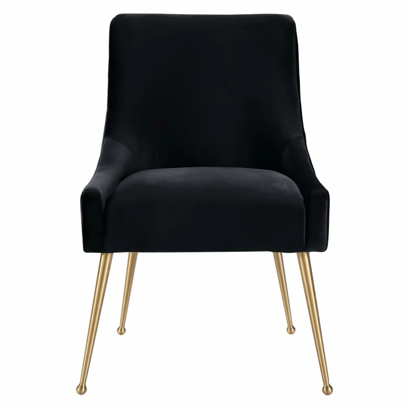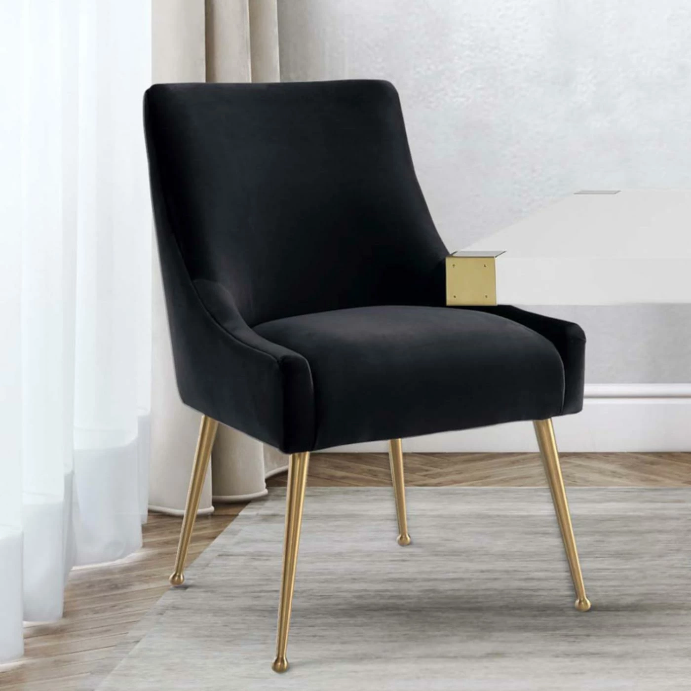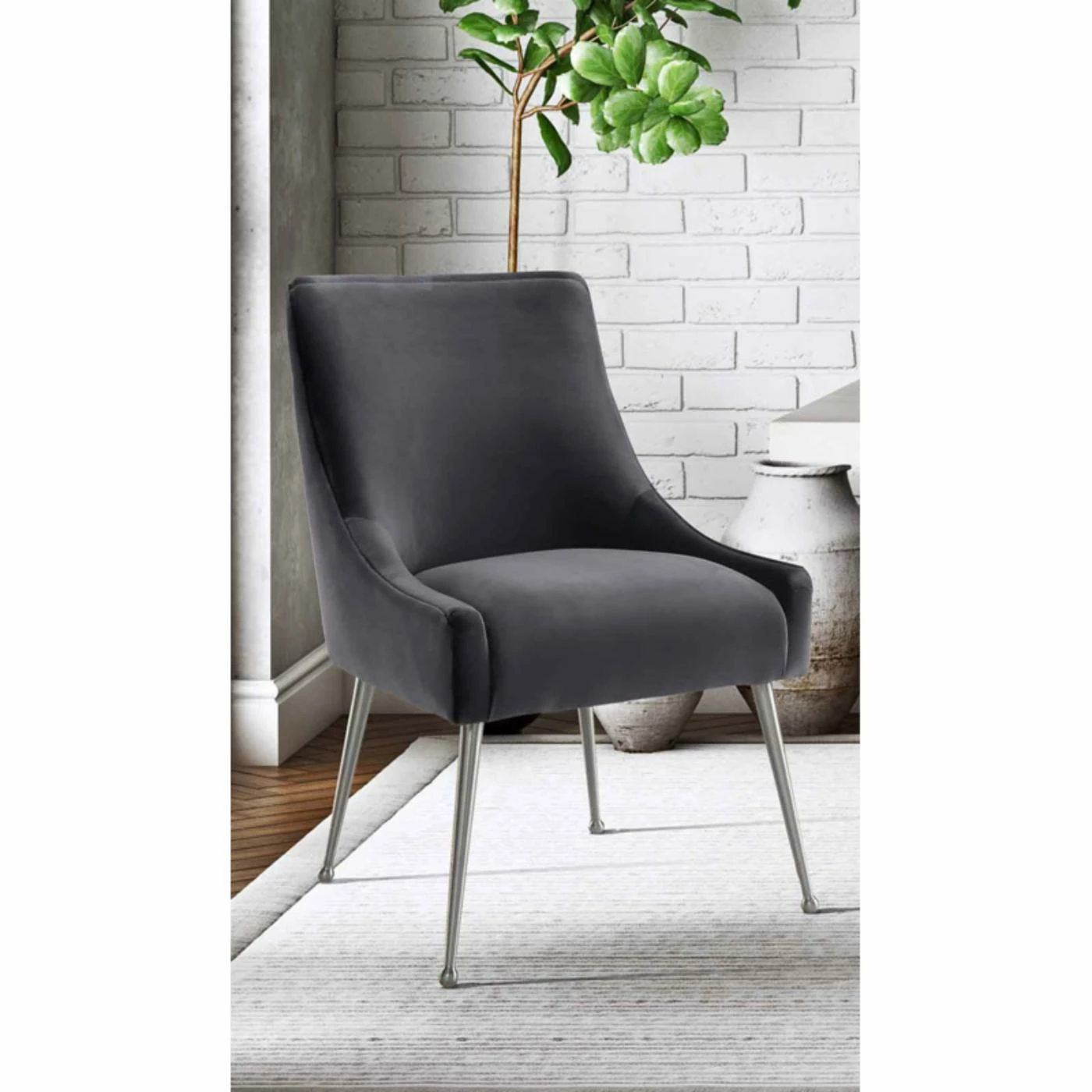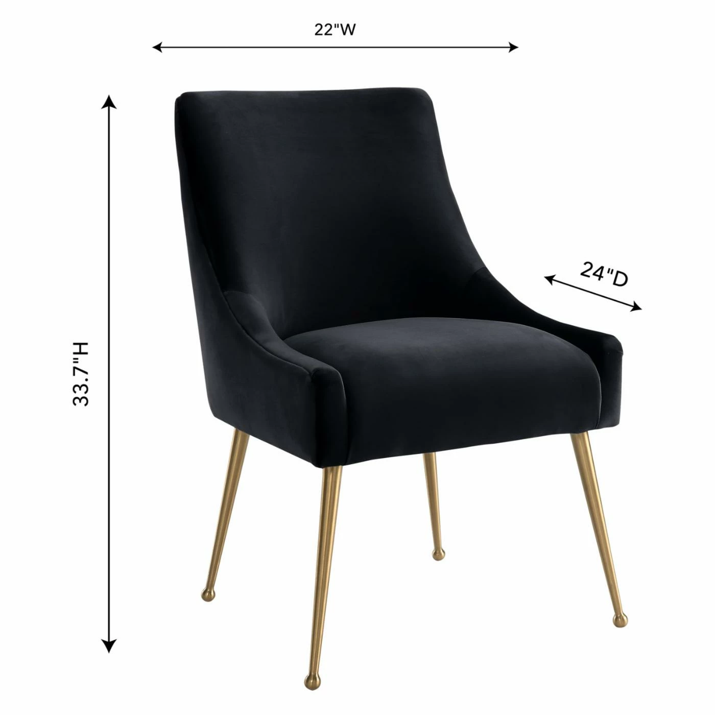 Provide your room with an attention-grabbing throwback accent in the TOV Furniture Beatrix Velvet Side Chair. This Mid-century inspired side chair is a great complement to your side table or sofa. A stainless steel frame supports this piece, outfitted with narrow, angled legs. Thick layers of dense, flame-retardant foam are used to pad the backrest, seat, and wingback sides. Upholstering the piece is a lush velvet fabric in your choice of Green, Grey or Blue. An ornate decorative handle is attached to the back of the Beatrix velvet side chair.