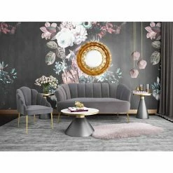Soften your modern space and add a little luxury with the TOV Furniture Daisy Petite Velvet Chair. This flower-inspired accent chair features a sturdy wood frame with lush velvet upholstery in your choice of available color to best match your glam aesthetic. A scalloped back with channel tufting emulates petals of an elegant flower and adds feminine appeal to any modern living room.