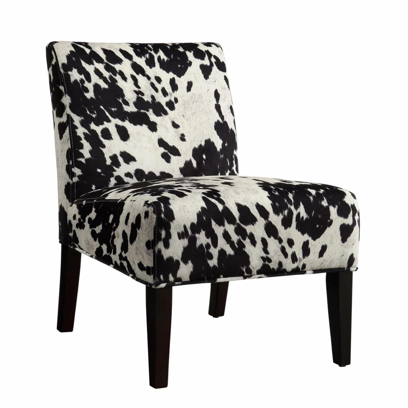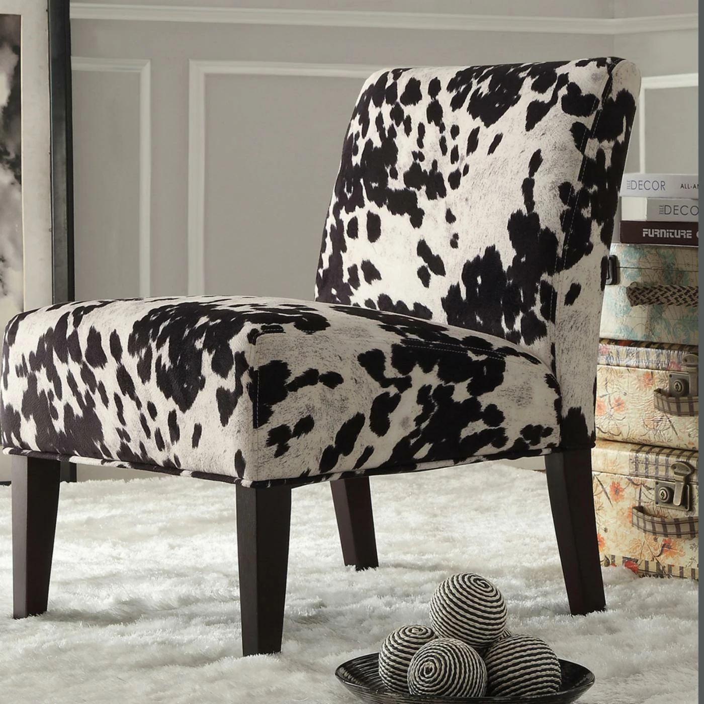 Add country appeal to your home with the Weston Home Black Cow Hide Lounger Chair. This comfortable lounger has the look of genuine spotted cowhide yet is made of soft cotton to be animal-friendly. Both the seat and back cushions are filled with polyurethane foam for added comfort. Espresso finished feet and a solid hardwood frame add durability.