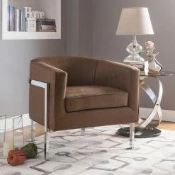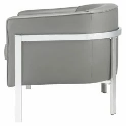 The Acme Furniture Tiarnan Accent Chair fuses contemporary style and lush comfort into one stunning piece. Faux leather upholstery in your choice of available colors complements any home, while metal tube legs in chrome accents the modern profile of the chair. Its curved backrest and thick, padded seat cushion makes this piece great for reading, watching TV, or just unwinding after a long day.