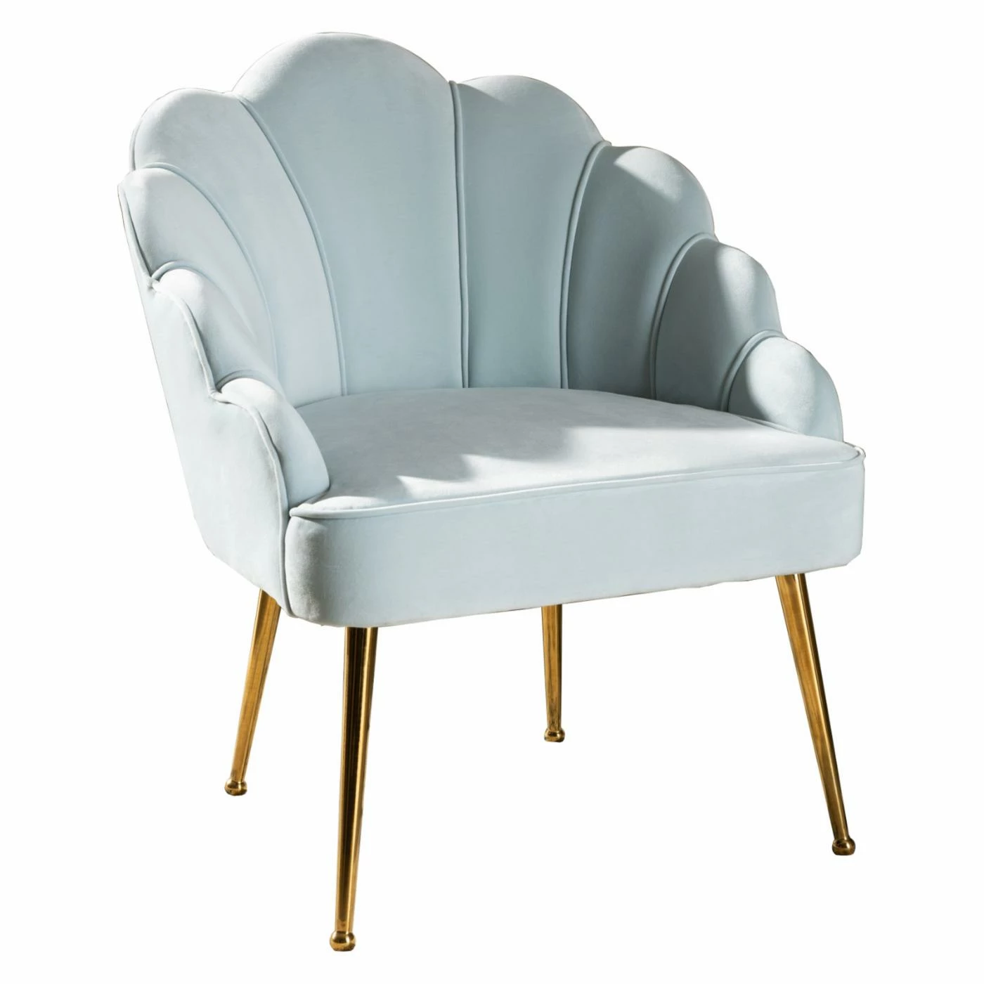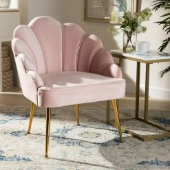 Use the Baxton Studio Cinzia Glam / Luxe Velvet Upholstered Seashell Shaped Accent Chair to bring a touch of the seashore to your living room. This chair is generously stuffed and upholstered in velvet, making it super-comfortable for lounging around. The gold-colored legs pair beautifully with your choice of available pastel shades. This piece will be a stylish hit in your home.