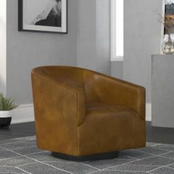 Enhance the seating experience in your living room and take the Comfort Pointe Gaven Leather Gel Swivel Chair for a spin. The sturdy base is wrapped in unique leather gel technology that’s as comfortable as real leather and very easy to maintain. Available in your choice of distinguished-looking colors, this armchair is as stylish as it is relaxing.