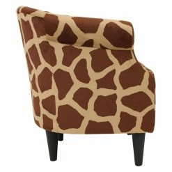 Accent any room with the Fox Hill Nikole Giraffe Print Club Chair’s dynamic animal print! Guests will gravitate toward this stylish armchair, which features rolled arms and a removable seat cushion. Assembly is simple – just screw on the tapered legs. Made in the USA.