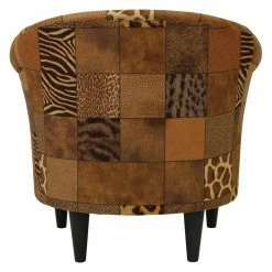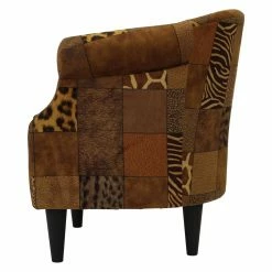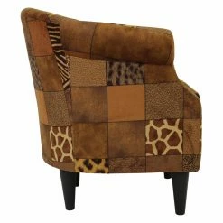Mix it up with the Fox Hill Nikole Patchwork Animal Print Club Chairβs wild prints! Soft polyester upholstery dresses this armchair in natureβs finest, including patches of zebra stripes, dimpled elephant skin, leopard spots, and the giraffeβs iconic net-like pattern. The seat cushion is removable, and the handsome tapered legs are easy to assemble. Made in the USA.