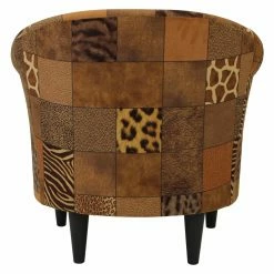 With the Fox Hill Savannah Patchwork Animal Print Club Chair, you get to enjoy the fun of animal print without committing to just one animal! The soft polyester print fabric includes squares of zebra stripe, leopard spots, wrinkly elephant skin, and more. A strong wooden frame, rolled arms, and tapered legs ensure years of use. Best of all, itβs made in the USA!
