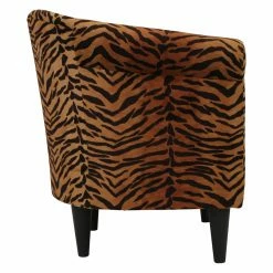 Animal prints are always on point β add primal power to your space with the Fox Hill Savannah Tiger Print Club Chair. This bucket-style armchair features rolled armrests and tapered legs. Itβs made in the USA and is backed by a 25-year warranty!