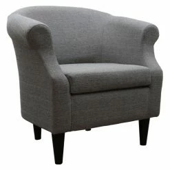 The Fox Hill Trading Lori Club Chair features a modern, durable design crafted from engineered wood and upholstered with soft poly-blend fabric to create a comfortable, easy-to-coordinate addition to your dรฉcor. This chairโs padded seat and back offer cushioned support for relaxed seating, while screw-on wooden legs provide a stable base for long-lasting appeal. A choice of available upholstery colors lets you customize this piece to suit your style.