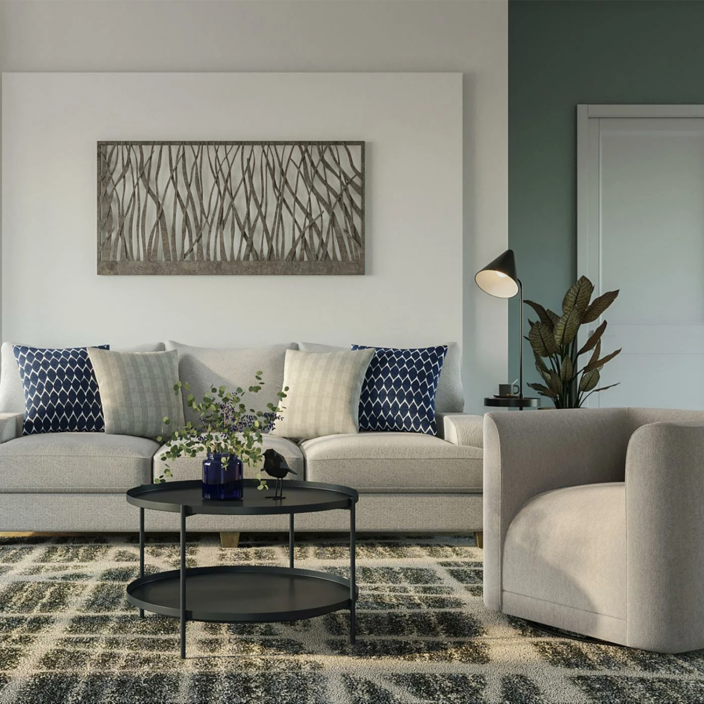 - Crafted in transitional style