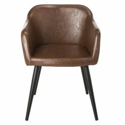The HN Home Sheridan Modern Farmhouse Accent Chair is a great choice for complementing mid-century decor. The seat is designed with round edges and upholstered with a genuine-looking leatherette material that has a textured appearance. It’s supported by outward-angled, round, tapered legs with a sleek black finish. This chair’s two-tone design is fashionable yet extremely versatile.