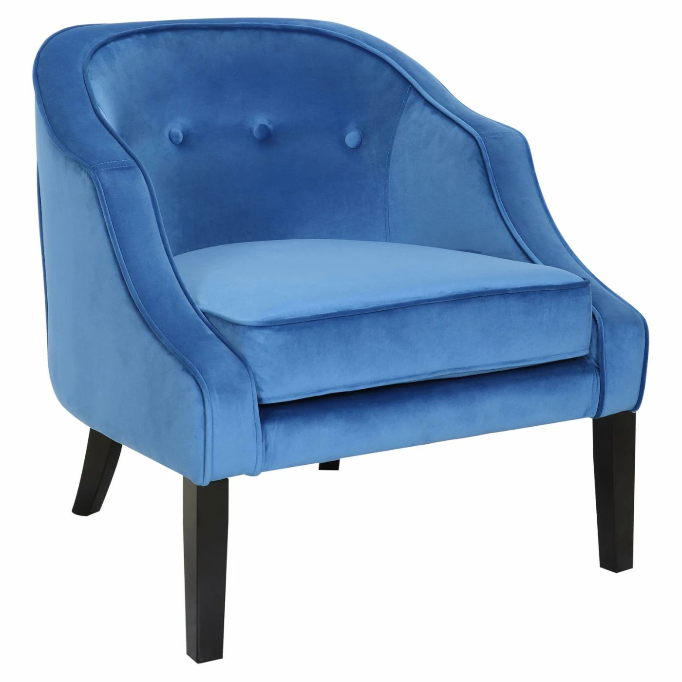 The LumiSource Sofia Tufted Barrel Chair is an excellent addition to a sunny seating space or cozy reading nook with its large seat and rounded back. Featured in a luxe velvet upholstery, this modern barrel chair includes your choice of available color along with tufted details. The chair sits atop durable, black wood legs that bring it sturdiness and an attractive finishing touch.