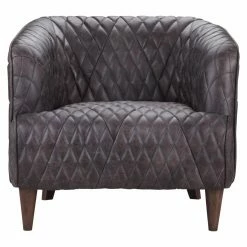 Capture the finest in style and luxury with the Moes Home Collection Magdelan Tufted Leather Arm Chair. This beautifully designed armchair features a top grain leather upholstery and is offered in a choice of available colors. Its fabric is adorned with diamond-tufted detailing, and its cushions are amply padded for superior comfort. With a sturdy wooden frame and solid rubberwood feet, this chair is made to last. Whether placed in the living room, den, or lounge, this armchair is sure to become your favorite spot to relax.
