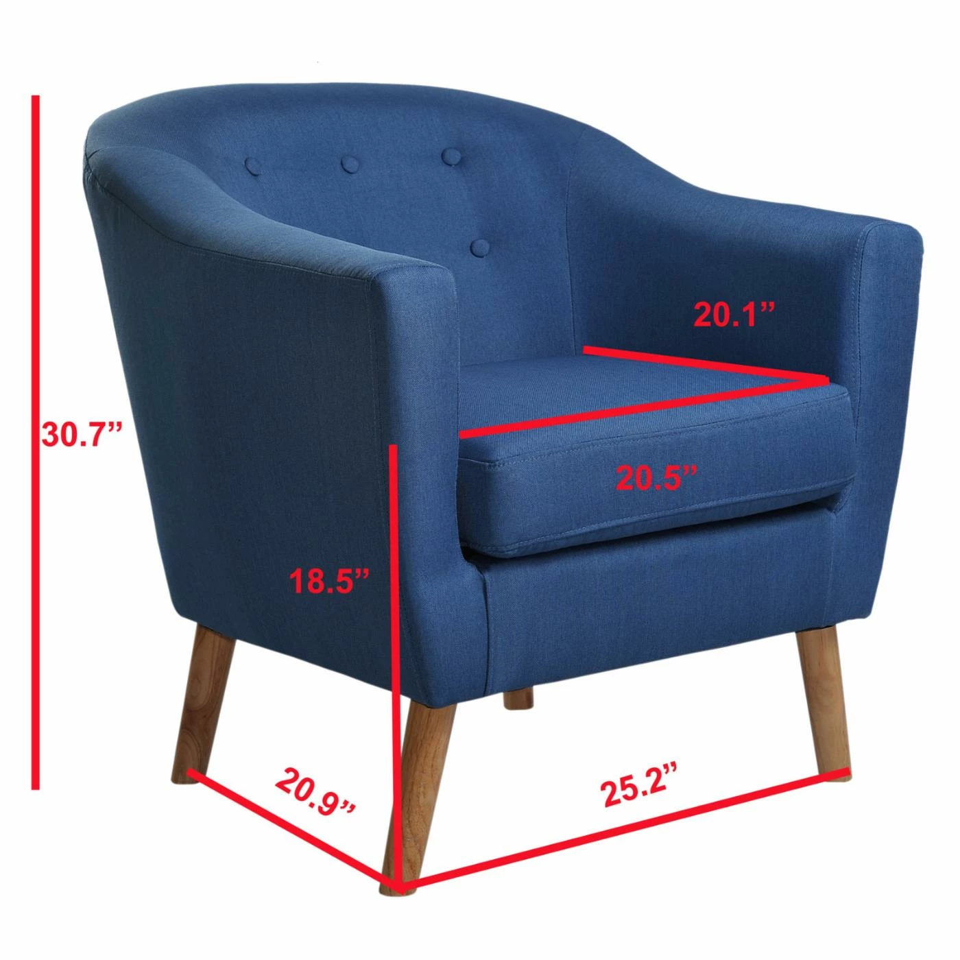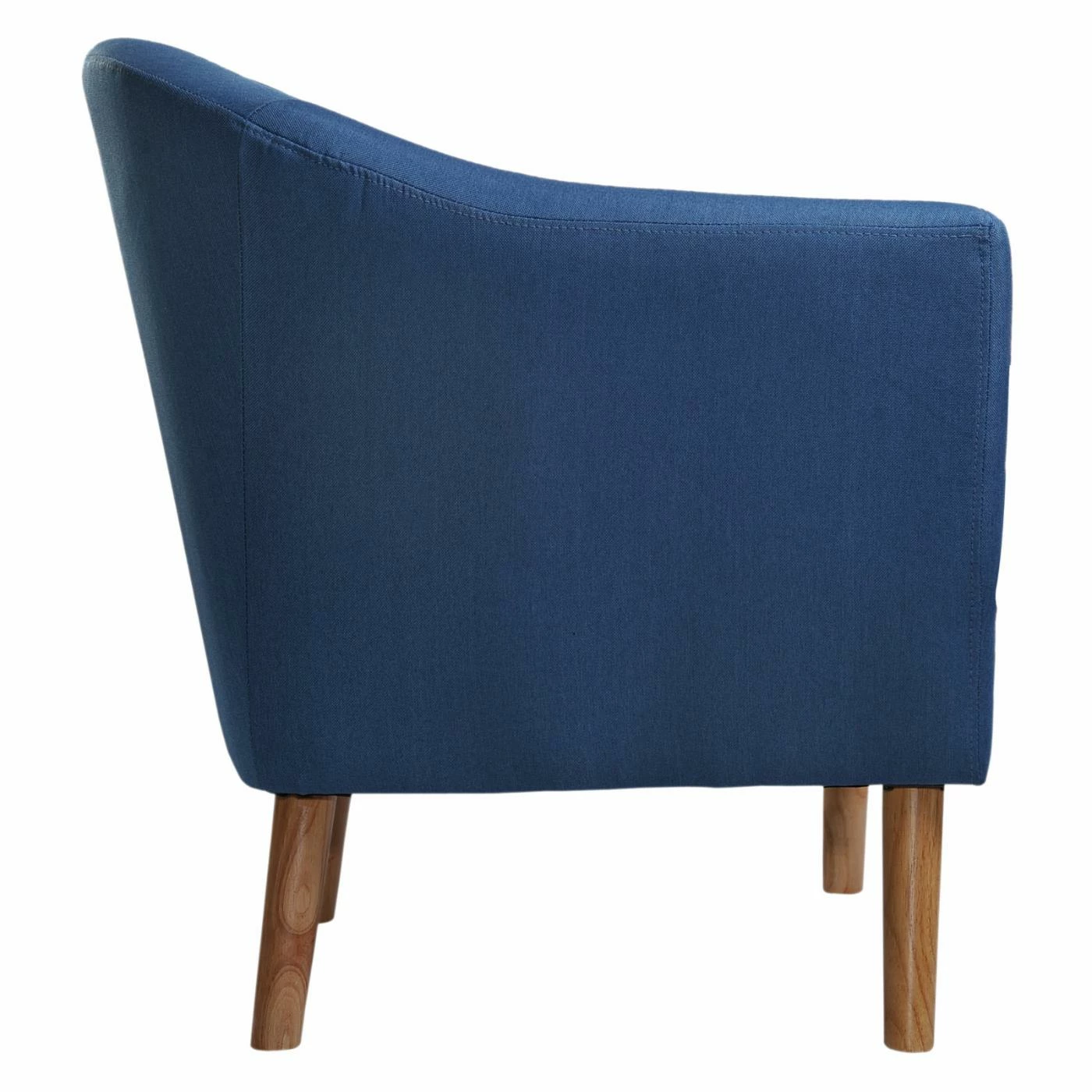 Get comfortable in the NH Designs Blue Fabric Tub Chair. Featuring a sturdy frame and curved back, this chair offers an inviting place to settle in for reading, vegging out, or entertaining. The legs are wooden with a natural finish.
