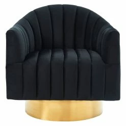 Make any sitting area more glamorous and welcoming with the addition of the !nspire Swivel Velvet Accent Chair. This armchair features a curved back design and a plush seat. The tufted channel construction enhances the glamorous look of the chair.