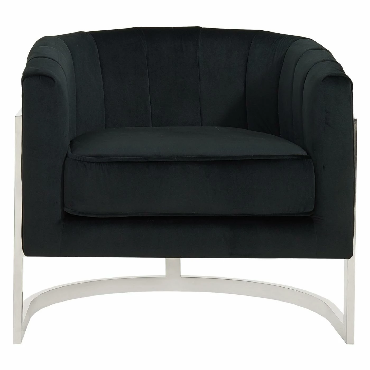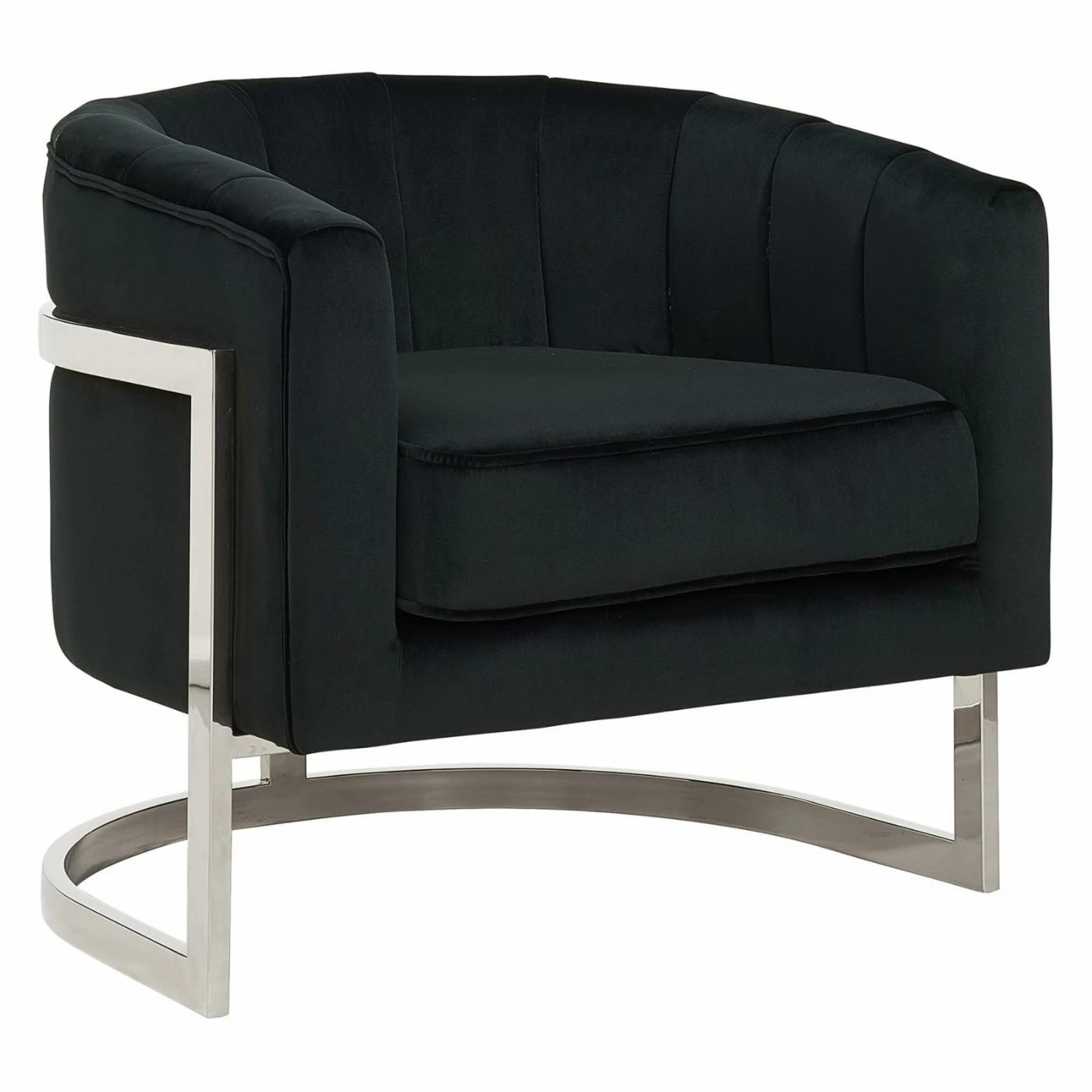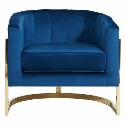 Welcome contemporary charm into your home with the !nspire Velvet / Chrome Accent Chair. This sturdy, metal chair showcases sleek, metallic finish options that lend a modern touch to the piece. Rich, velvet upholstery adds luxury, and horizontal panel tufting on the chair back delivers further intrigue. This sturdy chair complements living rooms, family rooms, and home offices, providing seating and style in one purchase.