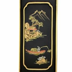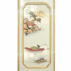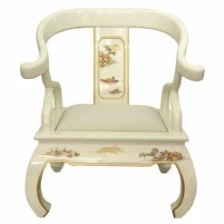 Why choose between a chair and some wall artwork when the Oriental Furniture Ming Chair is both in one? This comfortable chair has a gracefully-curved single-piece backrest and armrest with inward curved legs. The chair is rendered from tough wood and comes finished in your choice of glossy lacquer color (as available). The backrest slat and chair base come with a colorful river Asian river scene hand-painted against the lacquer. High-density foam pads the seat, upholstered in a bright white faux leather.