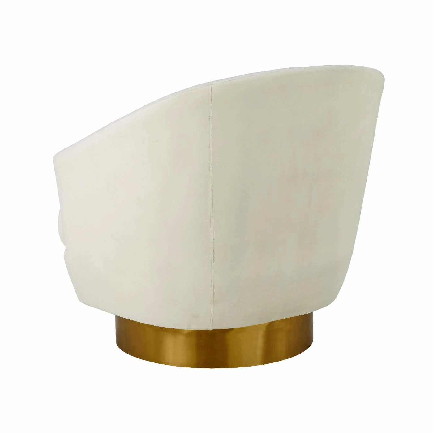 Keep up with every conversation in the room while staying in the comfortable TOV Furniture Canyon Swivel Accent Chair. A horizontal tufted back provides a unique design for you to lean on while you swivel around from convo to convo. The kiln dried wood frame is upholstered with velvet in your choice of available color. The round metal base is finished in a bright gold that adds to the modern feel of this bucket seat accent chair.