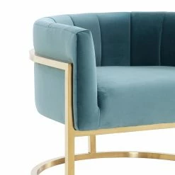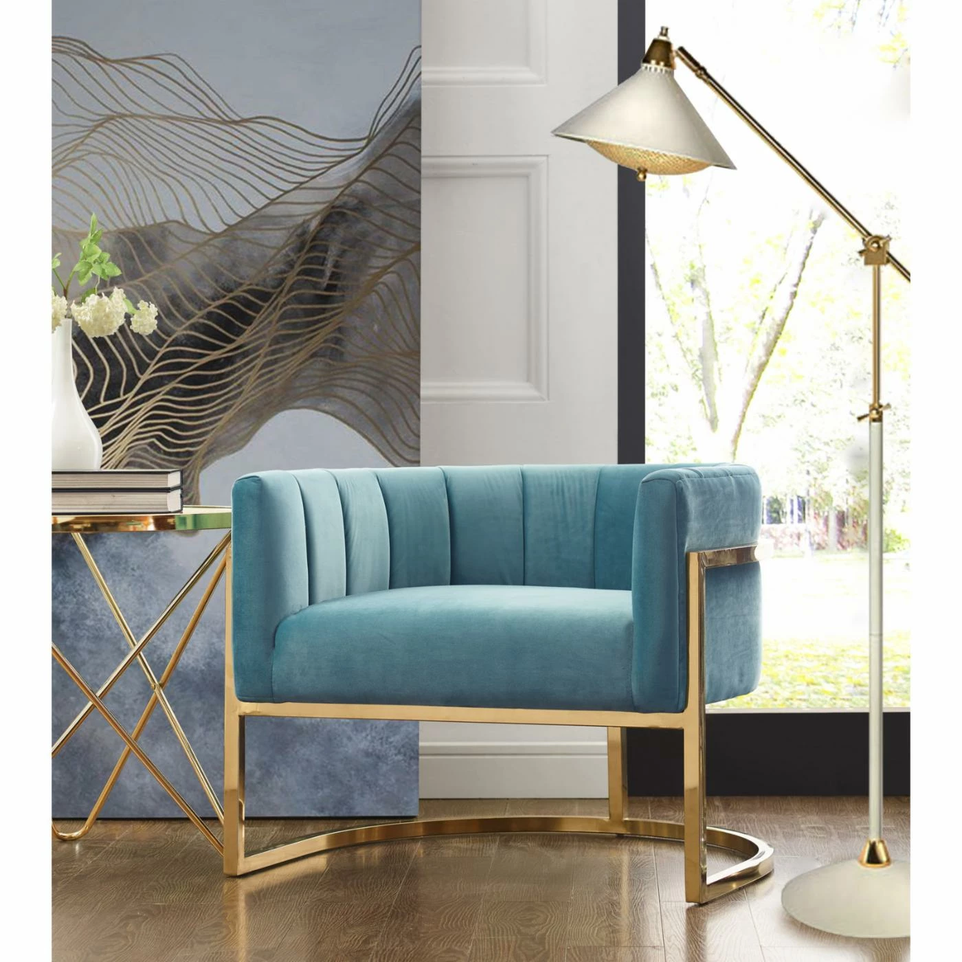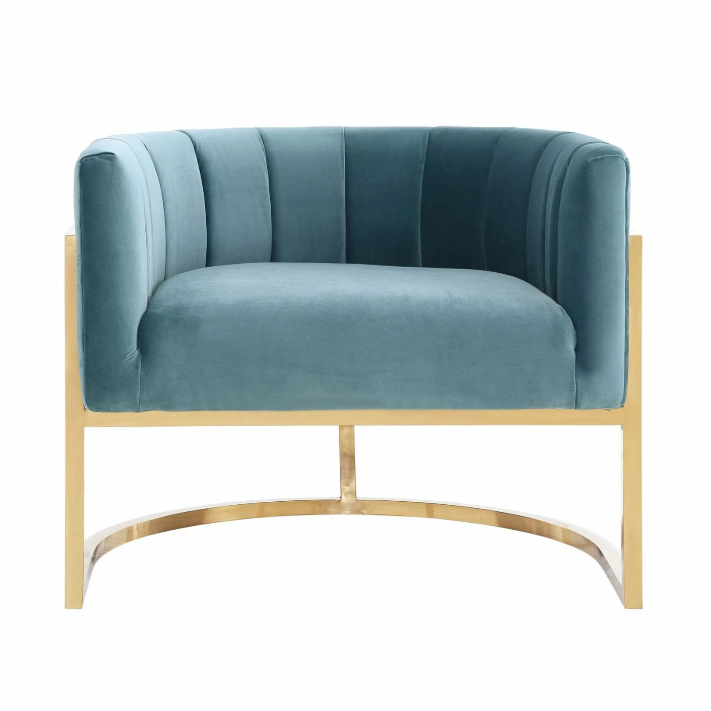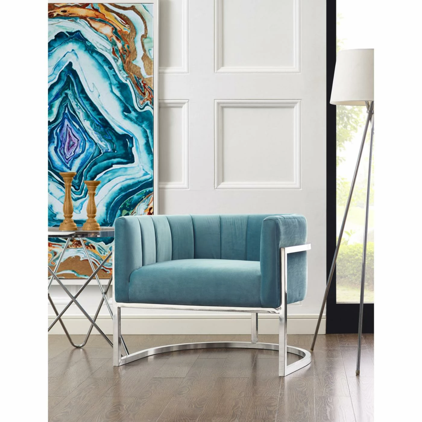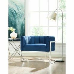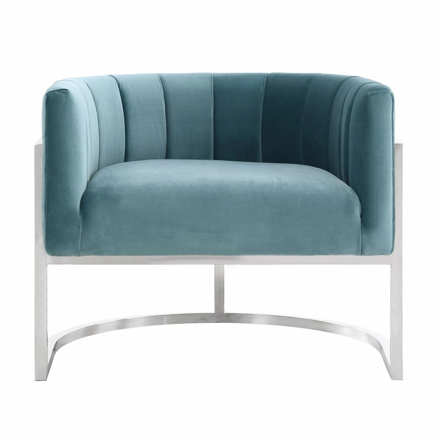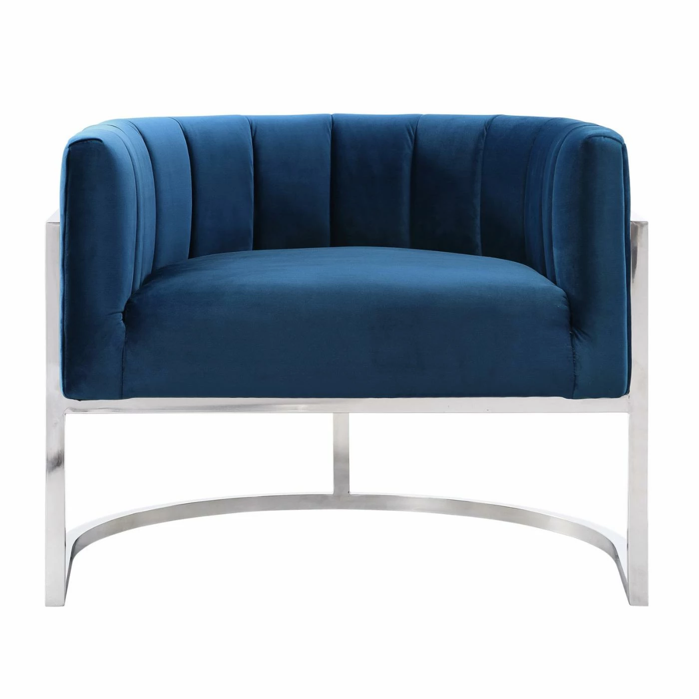 A charming complement to your Mid-century room, the TOV Furniture Magnolia Chair makes a comfortable friend for your console table or sofa. Its half-moon design is supported by a cantilever frame built from squared stainless steel. The seat itself comes padded by high-density and flame-retardant foam before being upholstered in a breathtaking velvet fabric. Select from available frame finish and fabric options for your Magnolia chair.