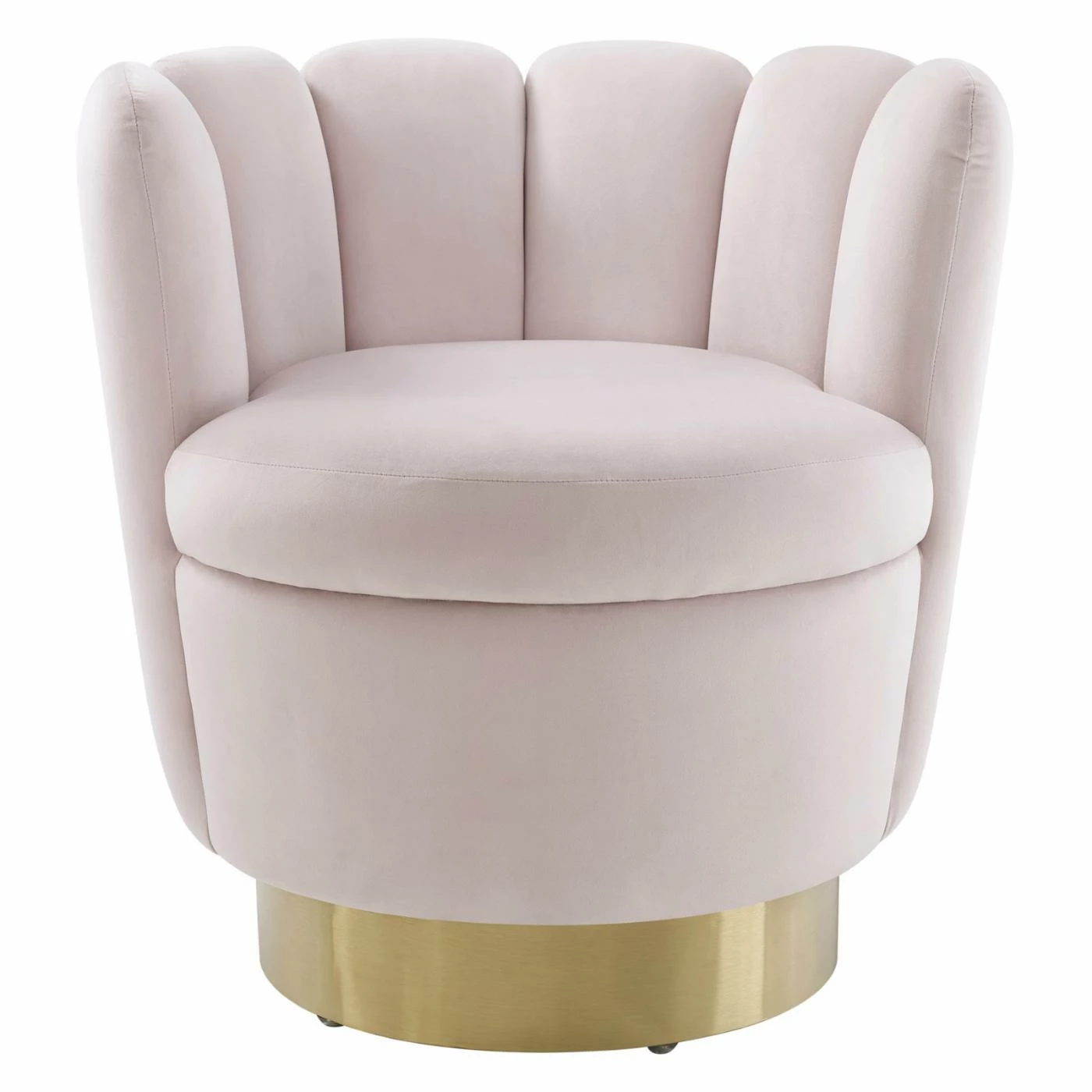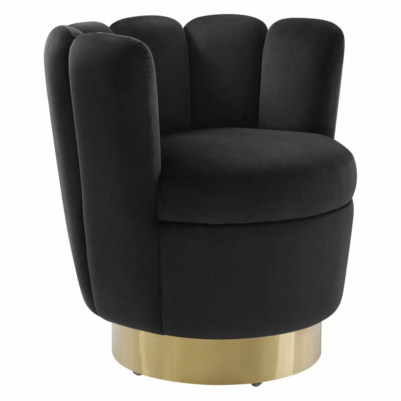 So retro, so glam, and so stylish, the TOV Furniture Yad Velvet Swivel Chair is unlike other swivel chairs. This accent chair is sure to make a statement in your living room, home office, or in the corner of your bedroom. It features a ’60s-inspired scalloped tufted back, deliciously upholstered in velvet. Choose from available colors.
