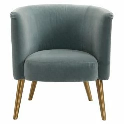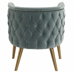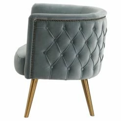 Sophisticated tufted detail accents the back of the Uttermost Haider Gray Accent Chair with refined detail. The soft gray fabric upholstery is complemented by the brushed brass finish of the angled legs. The thick foam cushioning keeps you comfortable as you lean back and settle into this accent chair. Nailhead trim completes the style with traditional poise.