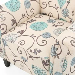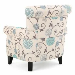 Enliven your transitional dΓ©cor with the mod floral pattern of the Greggory Floral Fabric Tufted Chair. Despite the contemporary appeal of the print on the polyester upholstery, the chair still manages to make a timeless statement with its button-tufted, rolled back and matching rolled arms. The chair stands on solid birch wood feet for strong support.